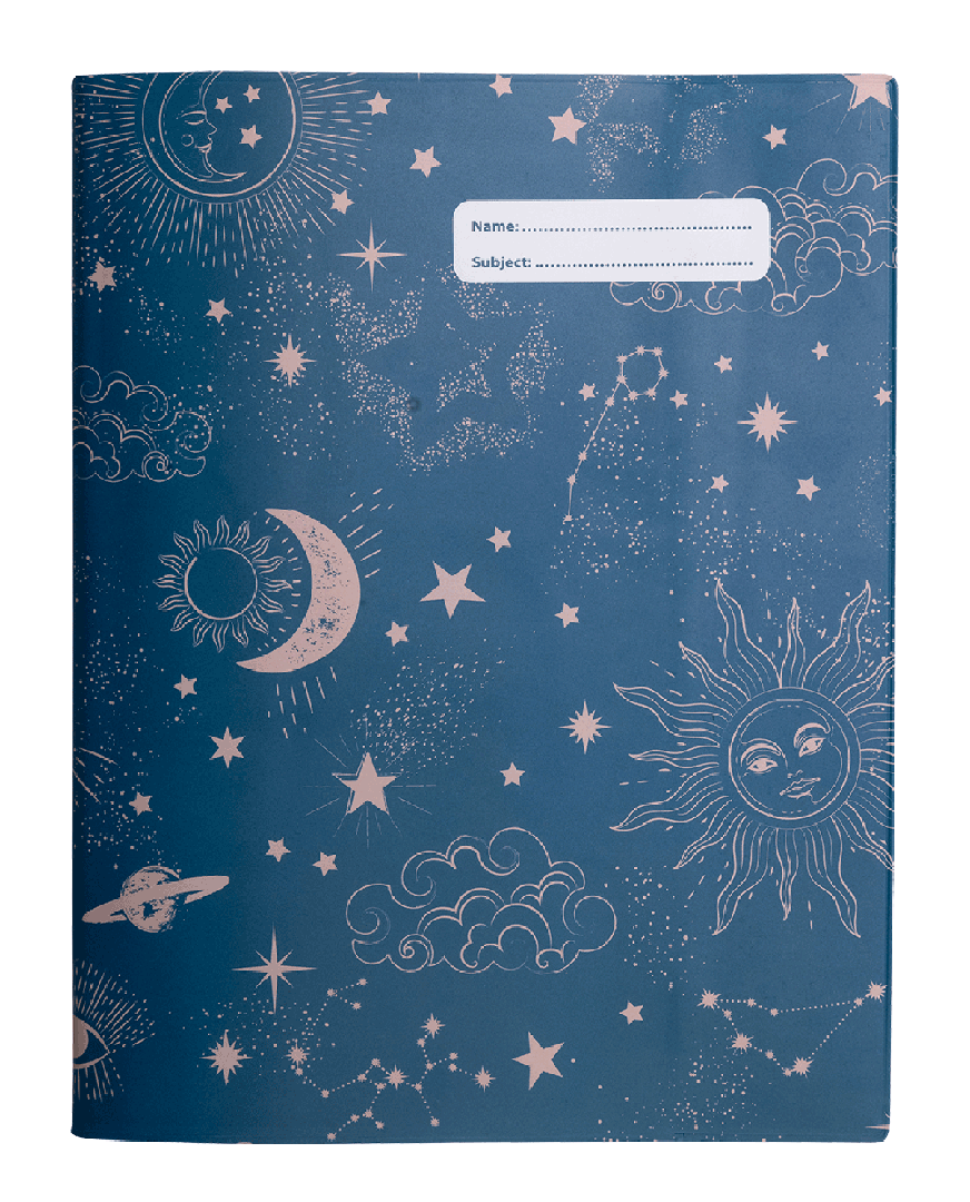 9x7 Exercise Book Cover - Cosmic Canter 2: For the horse-mad kids, Cosmic Canter takes their breath away. Taking their imaginations to a place where wild horses run free amidst a cosmic sky, this dreamy design opens up a universe of possibility.Don't wrestle with pesky, sticky book covering when you can cover books in just 10 seconds with this reusable, slip-on school book cover! It's a total game-changer. The perfect fit for exercise books (commonly known as 9x7" exercise books), it is made from from non-toxic certified PVC Reach material. It will surely make back to school easy for you and fun for the kids!
