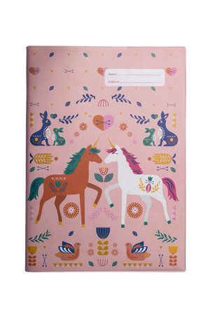 9x7 Exercise Book Cover - Unicornia 4: Unicornia is a special place where dreams are made and anything is possible. Full of magic and wonder, pretty unicorns prance and dance in a faraway land. Don't wrestle with pesky, sticky book covering when you can cover books in just 10 seconds with this reusable, slip-on school book cover! It's a total game-changer. The perfect fit for exercise books (commonly known as 9x7" exercise books), it is made from from non-toxic certified PVC Reach material. It will surely make back to school easy for you and fun for the kids!