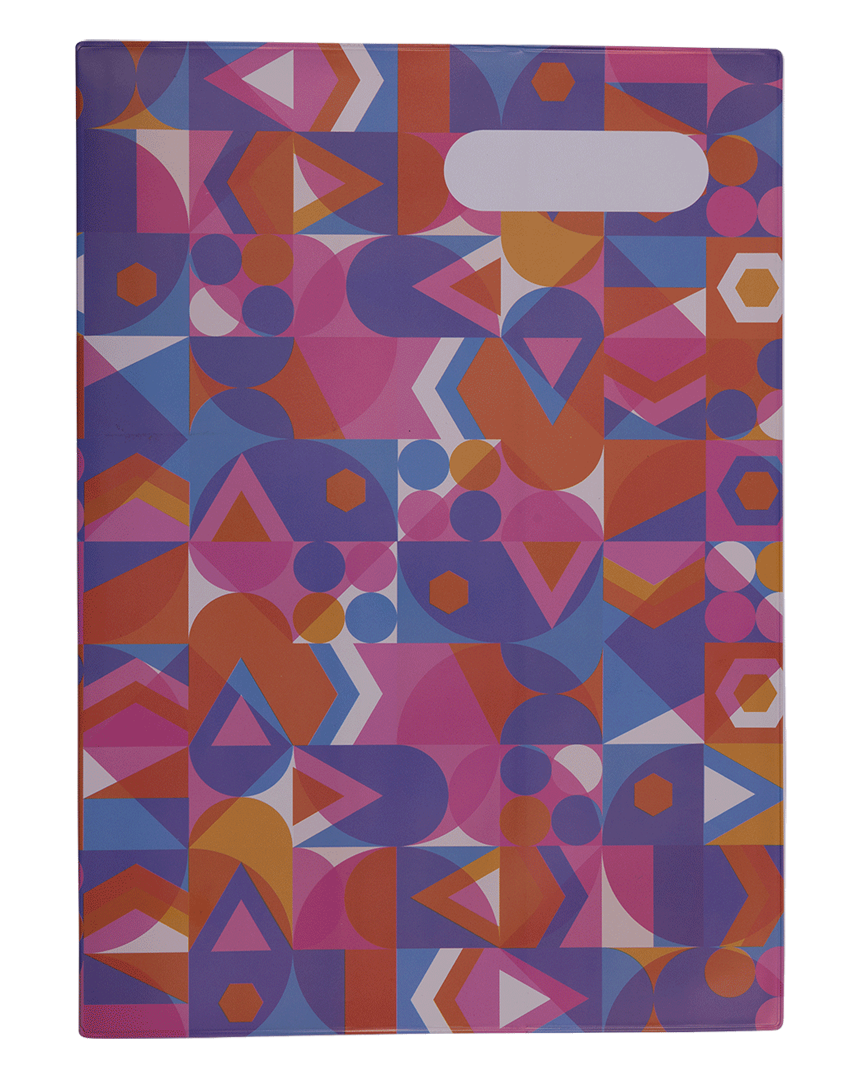 A4 Book Cover - Geo Pop 1: Don't wrestle with pesky, sticky book covering when you can cover books in just 10 seconds with this reusable, slip-on school book cover! It's a total game-changer. In A4 size, it fits A4 exercise books and is made from non-toxic certified PVC Reach material. It will surely make back to school easy for you and fun for the kids!