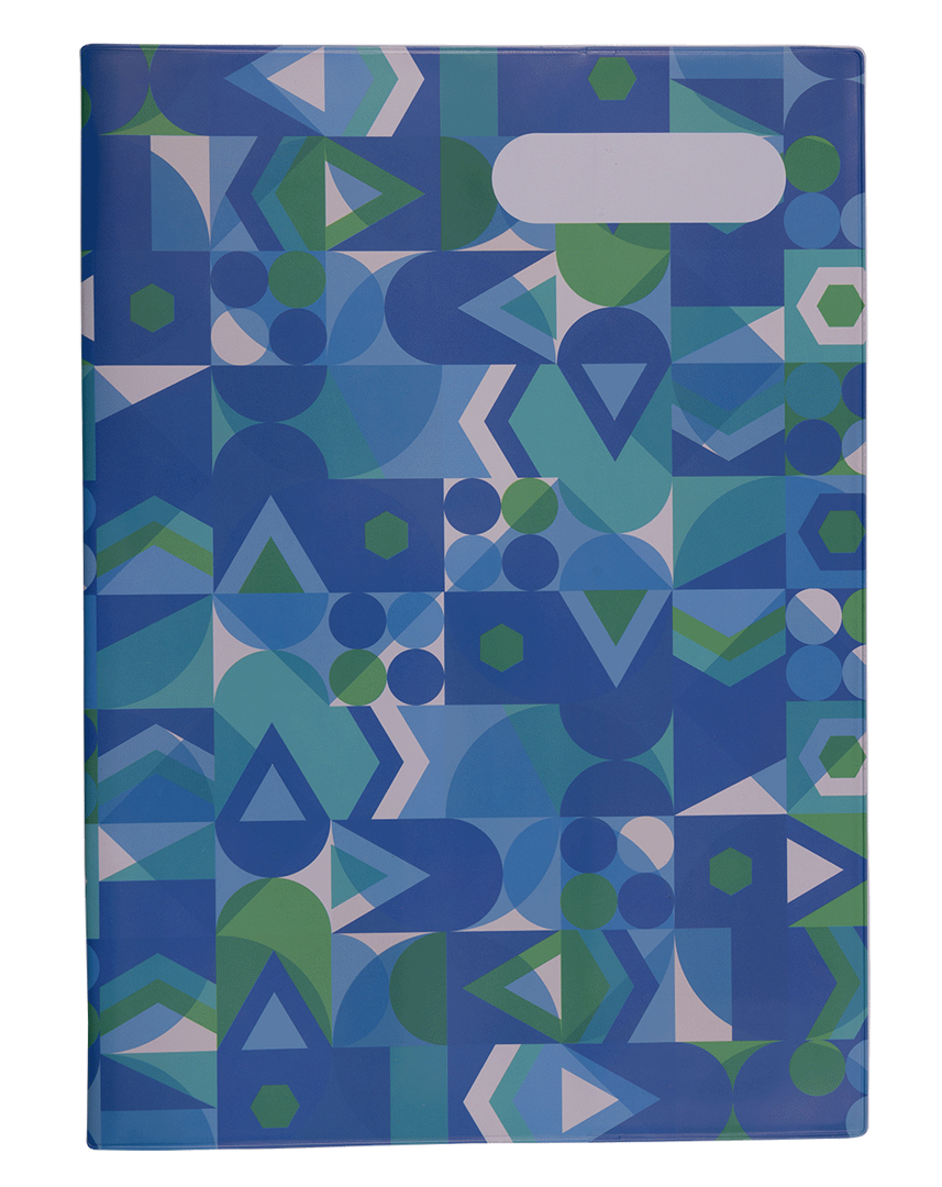 A4 Book Cover - Geo Pop 2: Don't wrestle with pesky, sticky book covering when you can cover books in just 10 seconds with this reusable, slip-on school book cover! It's a total game-changer. In A4 size, it fits A4 exercise books and is made from non-toxic certified PVC Reach material. It will surely make back to school easy for you and fun for the kids!