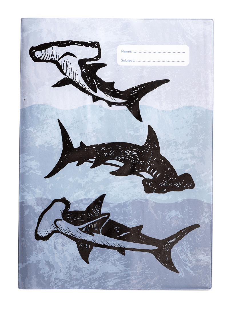 A4 Book Cover - Hammer-Time 1: Stop, Hammer Time! Shark-mad kids enter an underworld adventure with these cool hammer-heads! Perfect for lovers of the ocean, and all that live within it! Don't wrestle with pesky, sticky book covering when you can cover books in just 10 seconds with this reusable, slip-on school book cover! It's a total game-changer. In A4 size, it fits A4 exercise books and is made from non-toxic certified PVC Reach material. It will surely make back to school easy for you and fun for the kids!