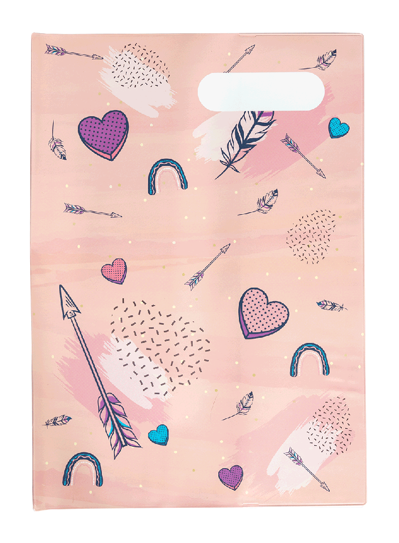 A4 Book Cover - Hearts & Arrows 2: Don't wrestle with pesky, sticky book covering when you can cover books in just 10 seconds with this reusable, slip-on school book cover! It's a total game-changer. In A4 size, it fits A4 exercise books and is made from non-toxic certified PVC Reach material. It will surely make back to school easy for you and fun for the kids!
