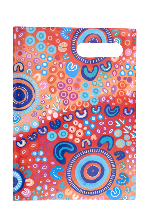 A4 Book Cover - Ngootypoorteen: Bayley Mifsud, the artist behind Merindah-Gunya, creates vibrant Aboriginal art that celebrates culture and storytelling. Her piece "Ngootypoorteen" beautifully illustrates the journey of children through their childhood, focusing on growth, friendship, and a deep connection to the land. The artwork reflects Bayley’s passion for expressing the beauty and significance of Aboriginal culture and traditions through contemporary art. Her work invites her audience to explore the stories woven into each piece, offering a colourful and meaningful connection to the rich heritage she represents. Don't wrestle with pesky, sticky book covering when you can cover books in just 10 seconds with this reusable, slip-on school book cover! It's a total game-changer. In A4 size, it fits A4 exercise books and is made from non-toxic certified PVC Reach material. It will surely make back to school easy for you and fun for the kids!