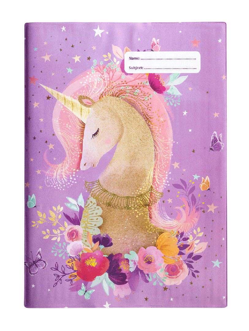 A4 Book Cover - Pure Magic Unicorn 1: Don't wrestle with pesky, sticky book covering when you can cover books in just 10 seconds with this reusable, slip-on school book cover! It's a total game-changer. In A4 size, it fits A4 exercise books and is made from non-toxic certified PVC Reach material. It will surely make back to school easy for you and fun for the kids!