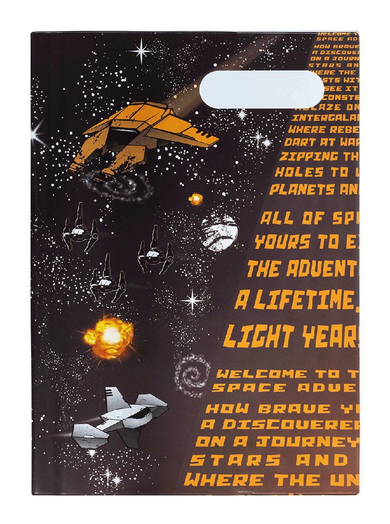 A4 Book Cover - Space Adventure 2: To the universe and beyond, kids enter an intergalactic mission with the Space Adventure range! They become a discoverer of worlds on a journey through stars and time, perfect for inquisitive minds with an interest in the universe beyond! Don't wrestle with pesky, sticky book covering when you can cover books in just 10 seconds with this reusable, slip-on school book cover! It's a total game-changer. In A4 size, it fits A4 exercise books and is made from non-toxic certified PVC Reach material. It will surely make back to school easy for you and fun for the kids!