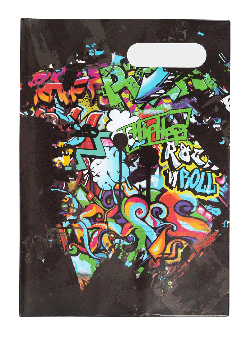 A4 Book Cover - Street Art 2: For the Rebels with a Cause, Street Art is a super-cool design to inspire creativity, art and a whole lot of fun! Don't wrestle with pesky, sticky book covering when you can cover books in just 10 seconds with this reusable, slip-on school book cover! It's a total game-changer. In A4 size, it fits A4 exercise books and is made from non-toxic certified PVC Reach material. It will surely make back to school easy for you and fun for the kids!