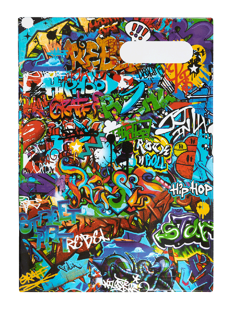 A4 Book Cover - Street Art I: For the Rebels with a Cause, Street Art is a super-cool design to inspire creativity, art and a whole lot of fun! Don't wrestle with pesky, sticky book covering when you can cover books in just 10 seconds with this reusable, slip-on school book cover! It's a total game-changer. In A4 size, it fits A4 exercise books and is made from non-toxic certified PVC Reach material. It will surely make back to school easy for you and fun for the kids!