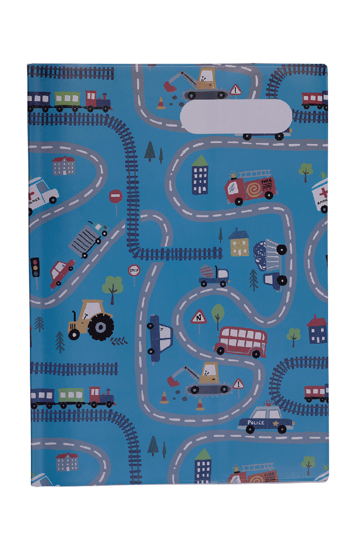 A4 Book Cover - Tiny Town: Welcome to Tiny Town! This whimsical design is a colourful map of a bustling mini-metropolis. Perfect for the little urban explorer with big dreams of adventure and discovery! Don't wrestle with pesky, sticky book covering when you can cover books in just 10 seconds with this reusable, slip-on school book cover! It's a total game-changer. In A4 size, it fits A4 exercise books and is made from non-toxic certified PVC Reach material. It will surely make back to school easy for you and fun for the kids!