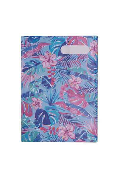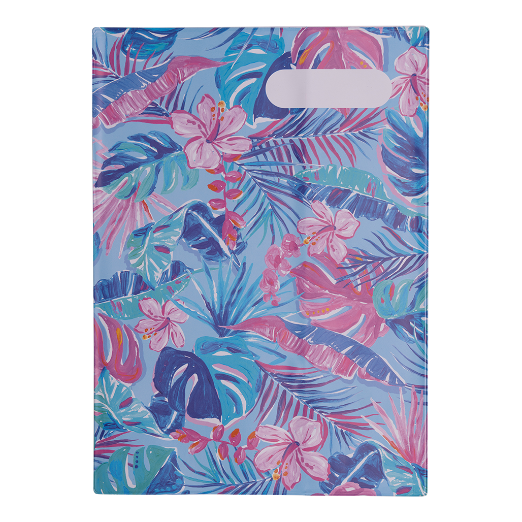 A4 Book Cover - Tropicana: Bring the tropics to school with Tropicana! Pink and blue floral prints scream summer vibes and beach days. A topical backpack will bring a touch of sunshine wherever they go. Don't wrestle with pesky, sticky book covering when you can cover books in just 10 seconds with this reusable, slip-on school book cover! It's a total game-changer. In A4 size, it fits A4 exercise books and is made from non-toxic certified PVC Reach material. It will surely make back to school easy for you and fun for the kids!