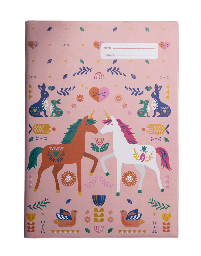 A4 Book Cover - Unicornia 1: Unicornia is a special place where dreams are made and anything is possible. Full of magic and wonder, pretty unicorns prance and dance in a faraway land. Don't wrestle with pesky, sticky book covering when you can cover books in just 10 seconds with this reusable, slip-on school book cover! It's a total game-changer. In A4 size, it fits A4 exercise books and is made from non-toxic certified PVC Reach material. It will surely make back to school easy for you and fun for the kids!