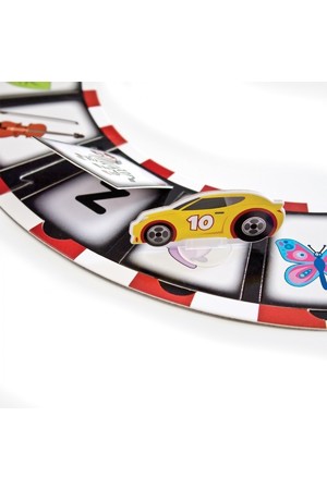 - Answer flaps on racetrack pieces reveal the answer beneath.