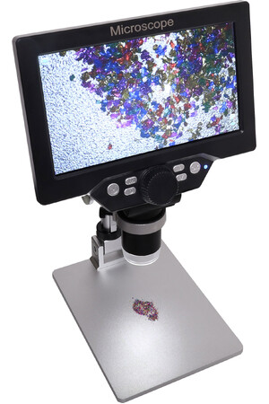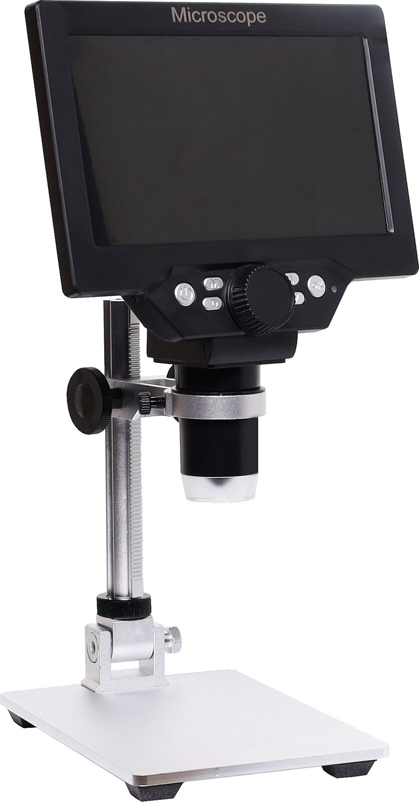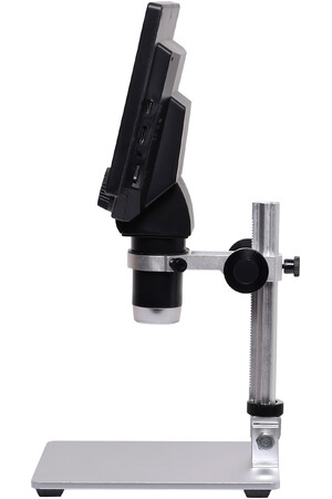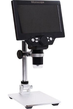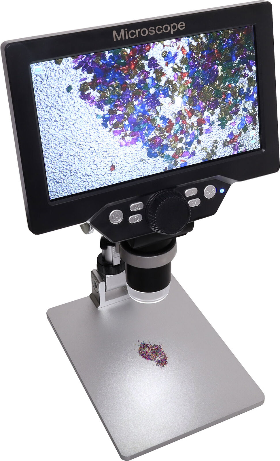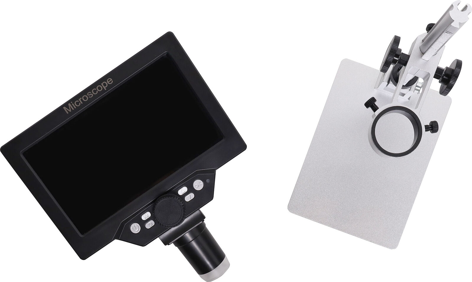 This digital microscope offers a 12MP camera and up to 1200X continuous magnification, letting you visually inspect fine details on virtually anything. Great for tasks such as PCB inspection, science classroom use and much more. Its built-in 7-inch colour HD display (1024×600 resolution) shows a live feed, which can be recorded to microSD card (either photos or video. Max 64GB, not included). Bright LEDs provide enhanced lighting, and an adjustable bracket allows angle variation up to 45° for flexibility working with tools underneath. For added flexibility it can be connected to a PC via USB for use as an on-screen camera.
