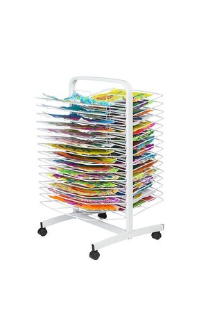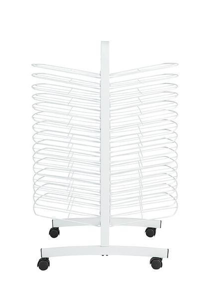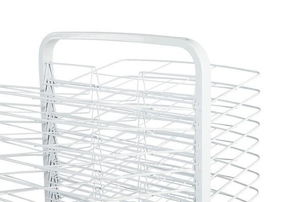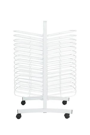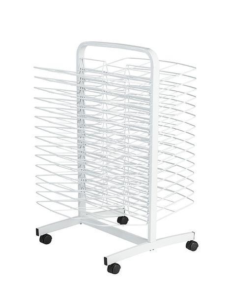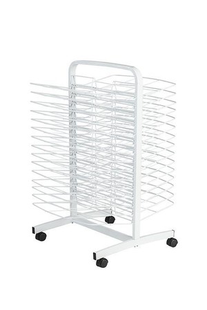 The heavy-duty lockable castors make it easy to move outside to speed drying time and the heavy-duty steel construction result in many years of service. Features 30 drying trays - 15 on each side. Trays measure 54cm x 35cm.