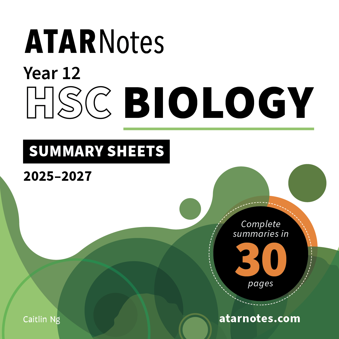 These Summary Sheets summarise the entire HSC Biology Year 12 course in 30 pages! Using easy to navigate dot point summaries, diagrams, equations, and tables, these Summary Sheets clearly set out everything you need to know to effectively study for your subject. Caitlin, a past high-achieving student, has passed on her condensed notes from HSC Biology to give you an effective study tool whether you want to cram before a big test or assignment, revise the basics from each Module, or keep up-to-date with each topic as you go through it in class.