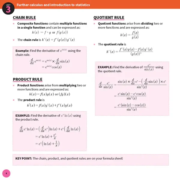 Each topic is broken up into dot point lists of concise summaries for each relevant mathematical idea or concept, meaning you can easily flip to what you want to revise or find something you’ve forgotten. From trigonometry to integration and sampling, this book efficiently summarises it all.