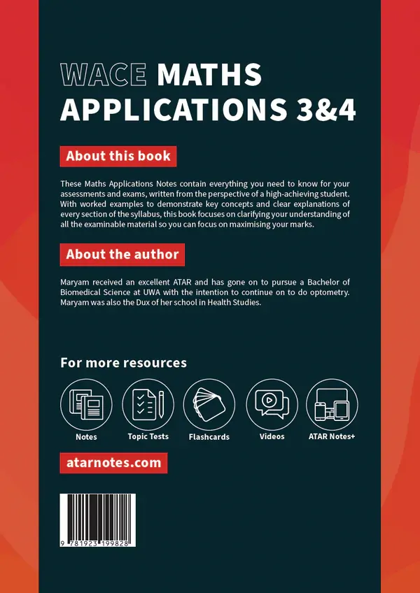 These Maths Applications Notes contain everything you need to know for your assessments and exams, written from the perspective of a high-achieving student. With worked examples to demonstrate key concepts and clear explanations of every section of the syllabus, this book focuses on clarifying your understanding of all the examinable material so you can focus on maximising your marks.