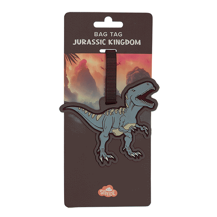 Bag Tag - Jurassic Kingdom: This fun and adventurous dinosaur design is perfect for dino-loving kids! Whether your child dreams of exploring prehistoric lands or simply loves the roar of a T-Rex, Jurassic Kingdom is sure to bring delight to them every day.