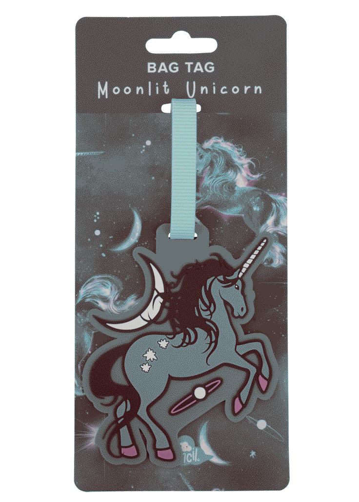 Bag Tag - Moonlit Unicorn: Under a starlit sky, magic comes to life! Moonlit Unicorn is a dreamy swirl of twilight colours, sparkling stars and one truly majestic unicorn. It's pure enchantment for kids who believe in a universe full of wonder.