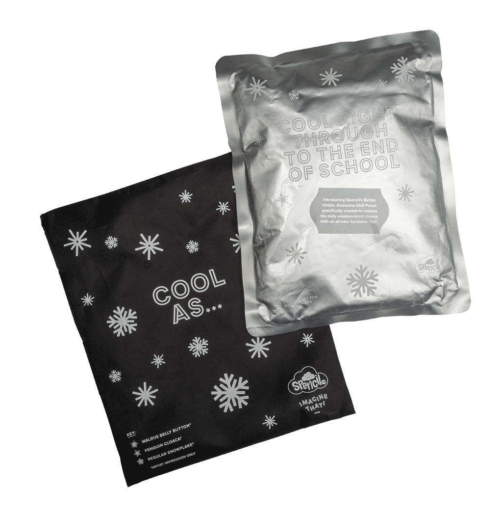 Big Chill Pack: Keep the kids' lunch cool as a cucumber with this handy chill pack. Certified food safe, this big pack of chill ensures lunch stays fresh and crisp (and eaten!). The slip-on cover is machine-washable and fits snugly in the Big Cooler Lunch Bag — a match made in heaven!