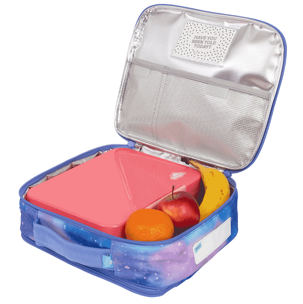 The Big Cooler Lunch Bag is the ideal bigger size- with extra room for fruit or small containers! With aluminium food-safe silver lining, a back zip pocket that perfectly fits the Big Chill Pack, outside name card pocket and an additional inside pocket for 'Love Notes' this is your go-to lunch bag for school and play!