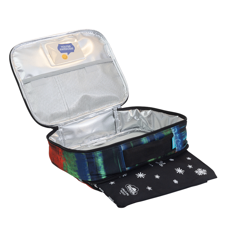 Big Cooler Lunch Bag + Chill Pack - Ignite: Ignite your imagination with this dynamic design! Bursting with energy and bold colours, it’s perfect for those who are always on the move, full of passion, and ready to set the world on fire with their creativity.