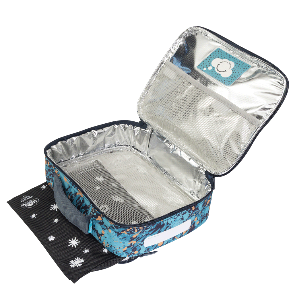 The Big Cooler Lunch Bag is the ideal bigger size, perfect for fitting the Big Chill Pack - with extra room for fruit or small containers! With aluminium food-safe silver lining, a back zip pocket that perfectly fits the Big Chill Pack, outside name card pocket and an additional inside pocket for 'Love Notes' this is your go-to lunch bag for school and play! The Big Chill Pack is the perfect companion to the Big Cooler Lunch Bag.