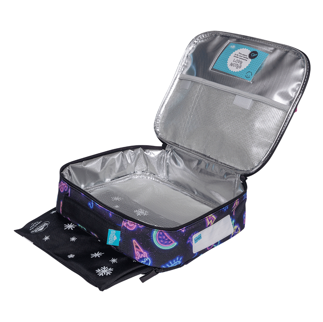 The Big Cooler Lunch Bag is the ideal bigger size, perfect for fitting the Big Chill Pack - with extra room for fruit or small containers! With aluminium food-safe silver lining, a back zip pocket that perfectly fits the Big Chill Pack, outside name card pocket and an additional inside pocket for 'Love Notes' this is your go-to lunch bag for school and play! The Big Chill Pack is the perfect companion to the Big Cooler Lunch Bag.