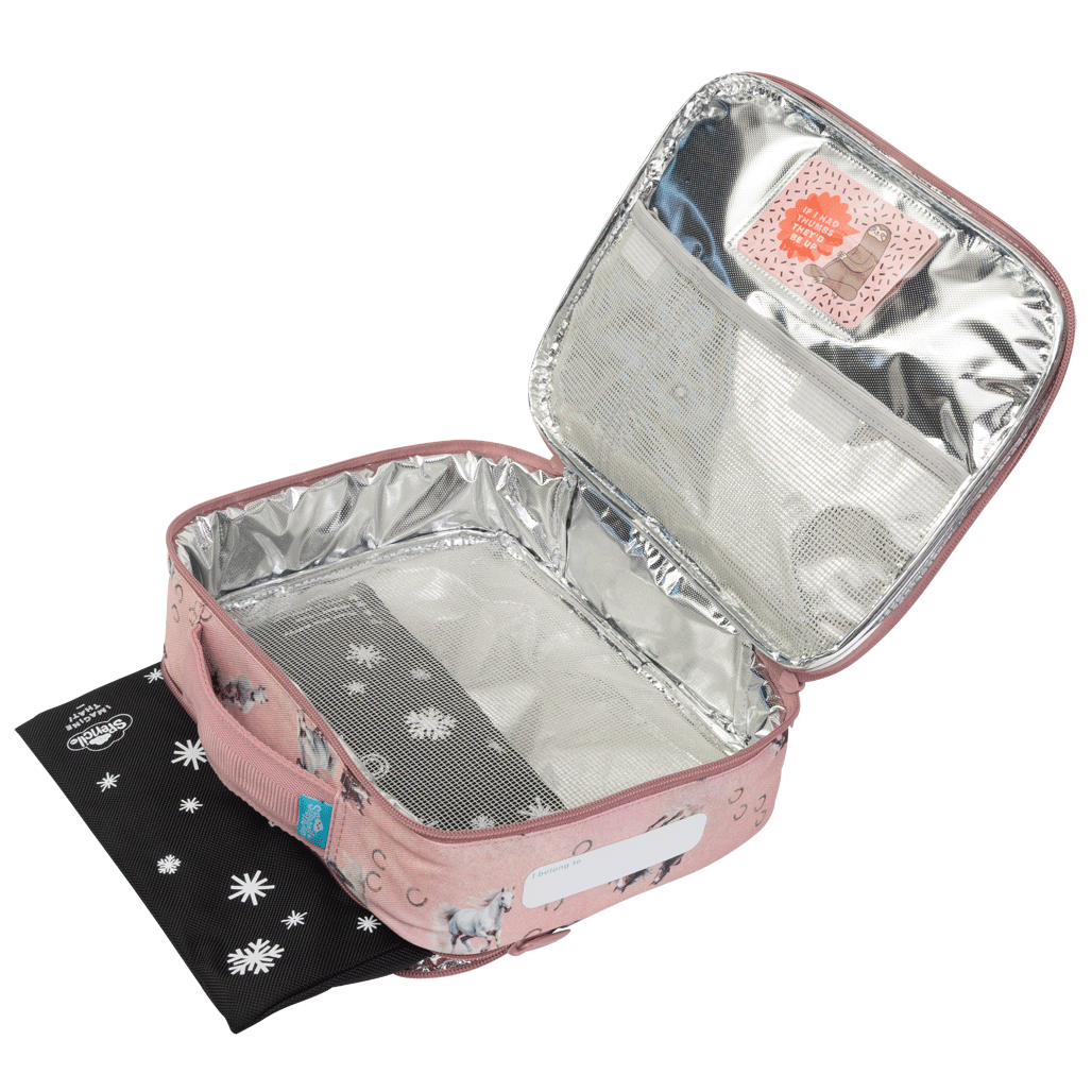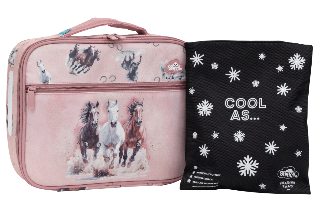 Big Cooler Lunch Bag + Chill Pack - Wild Horses: For every horse-loving kid with a wild heart and big imagination - this one's for you. Wild Horses gallops into a dreamy world where ponies run free across soft, dusty pink skies. It's warm, whimsical, and full of freedom.