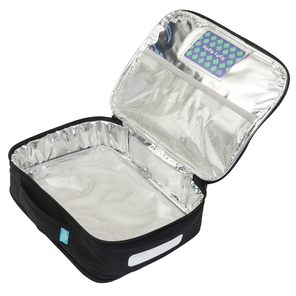 The Big Cooler Lunch Bag is the ideal bigger size- with extra room for fruit or small containers! With aluminium food-safe silver lining, a back zip pocket that perfectly fits the Big Chill Pack, outside name card pocket and an additional inside pocket for 'Love Notes' this is your go-to lunch bag for school and play!