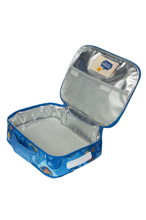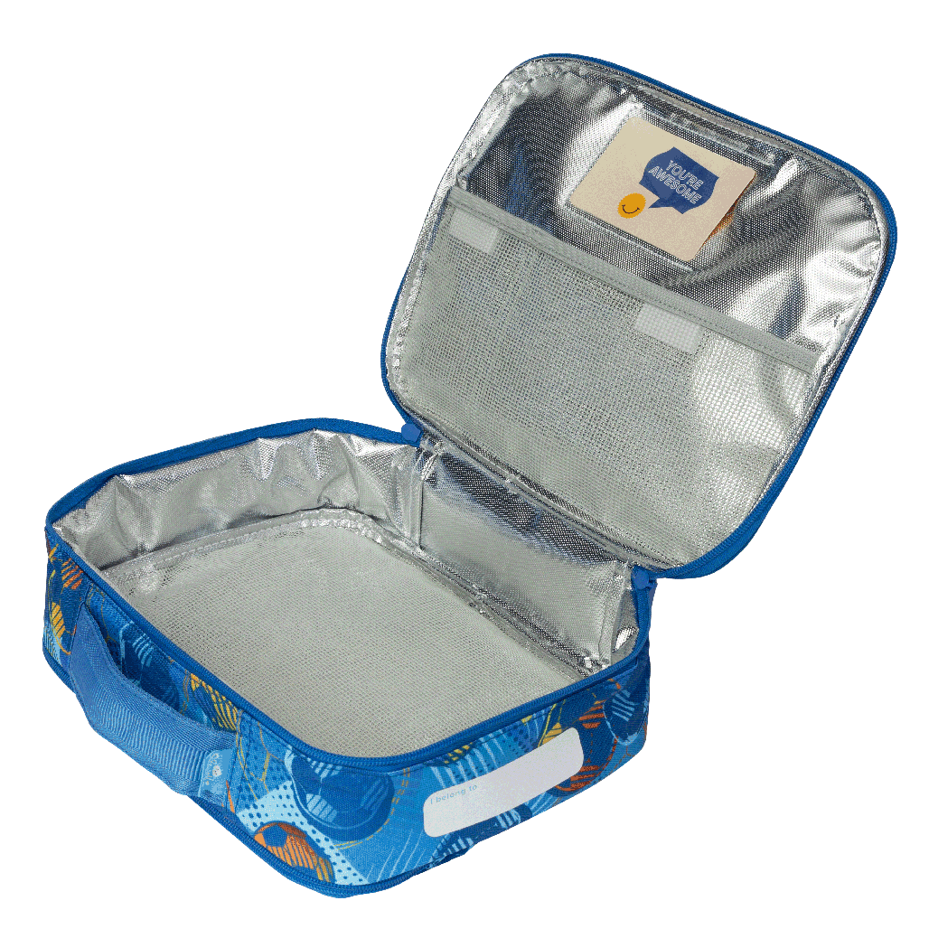 The Big Cooler Lunch Bag is the ideal bigger size- with extra room for fruit or small containers! With aluminium food-safe silver lining, a back zip pocket that perfectly fits the Big Chill Pack, outside name card pocket and an additional inside pocket for 'Love Notes' this is your go-to lunch bag for school and play!