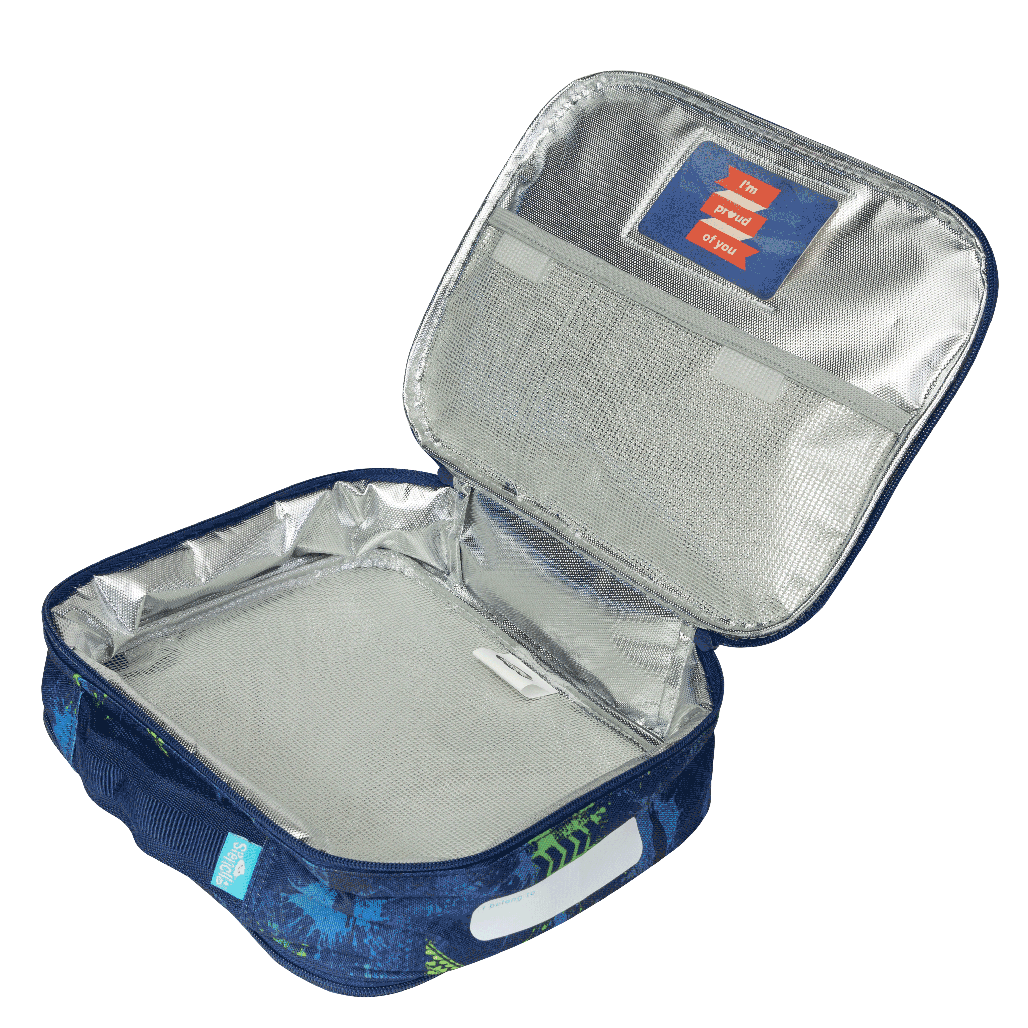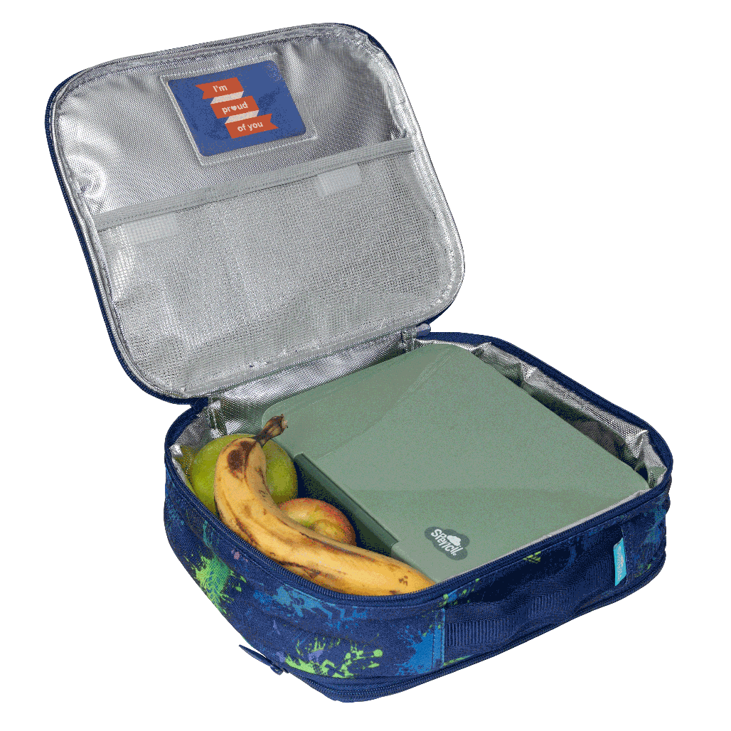 The Big Cooler Lunch Bag is the ideal bigger size- with extra room for fruit or small containers! With aluminium food-safe silver lining, a back zip pocket that perfectly fits the Big Chill Pack, outside name card pocket and an additional inside pocket for 'Love Notes' this is your go-to lunch bag for school and play!