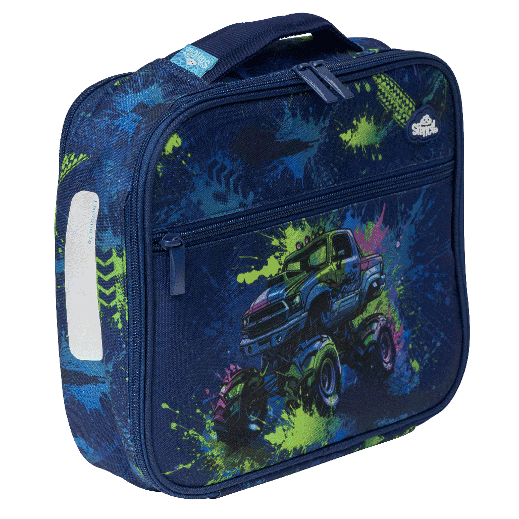 Big Cooler Lunch Bag - Mega Wheels: Rev up with Mega Wheels! Featuring a bold design of monster trucks and massive wheels, this one is for the thrill-seekers and adrenaline junkies. Perfect for those who love to crush each day and ride high over any obstacle!