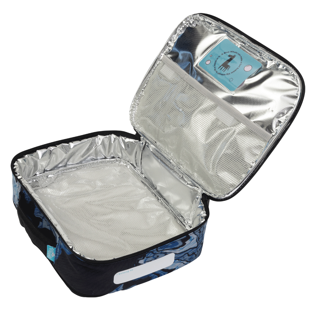 The Big Cooler Lunch Bag is the ideal bigger size- with extra room for fruit or small containers! With aluminium food-safe silver lining, a back zip pocket that perfectly fits the Big Chill Pack, outside name card pocket and an additional inside pocket for 'Love Notes' this is your go-to lunch bag for school and play!