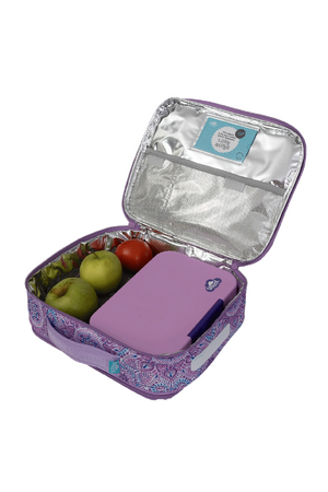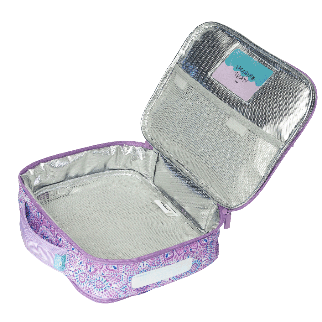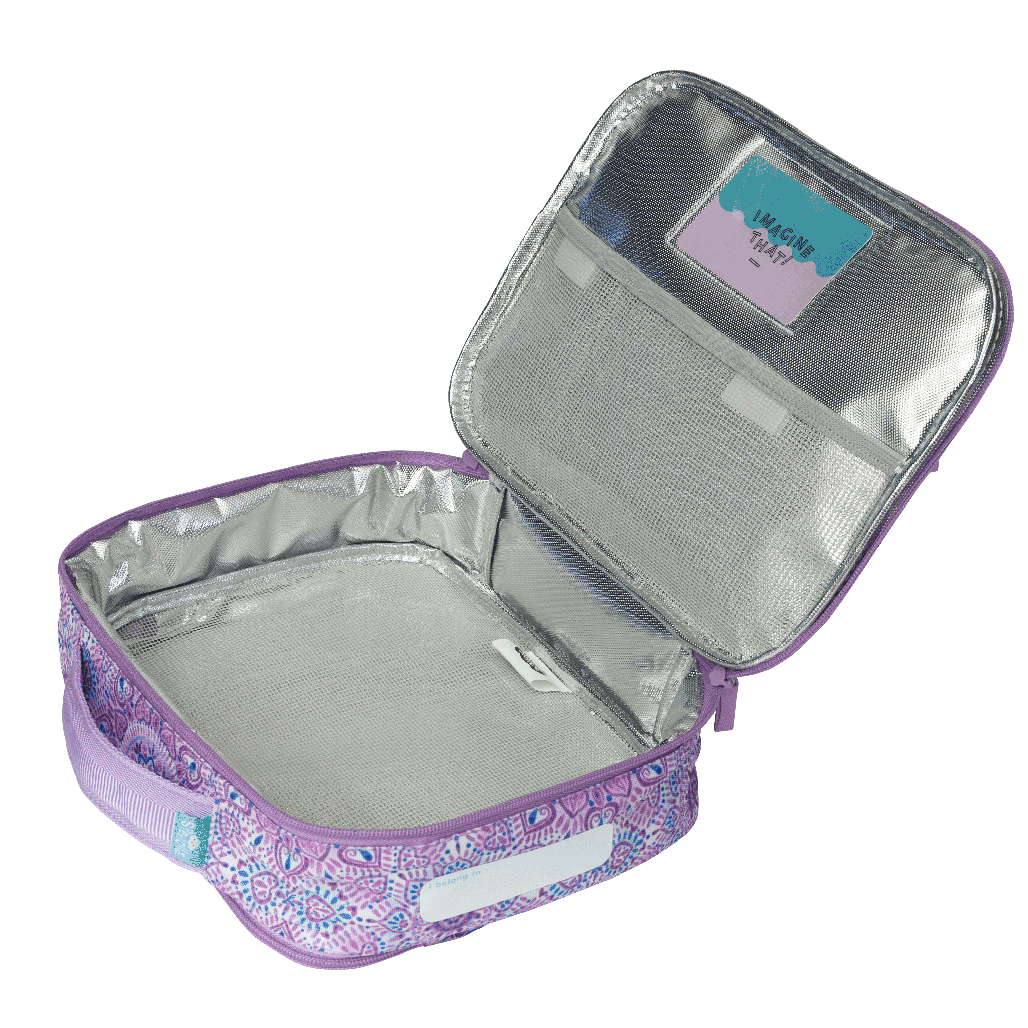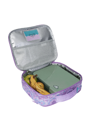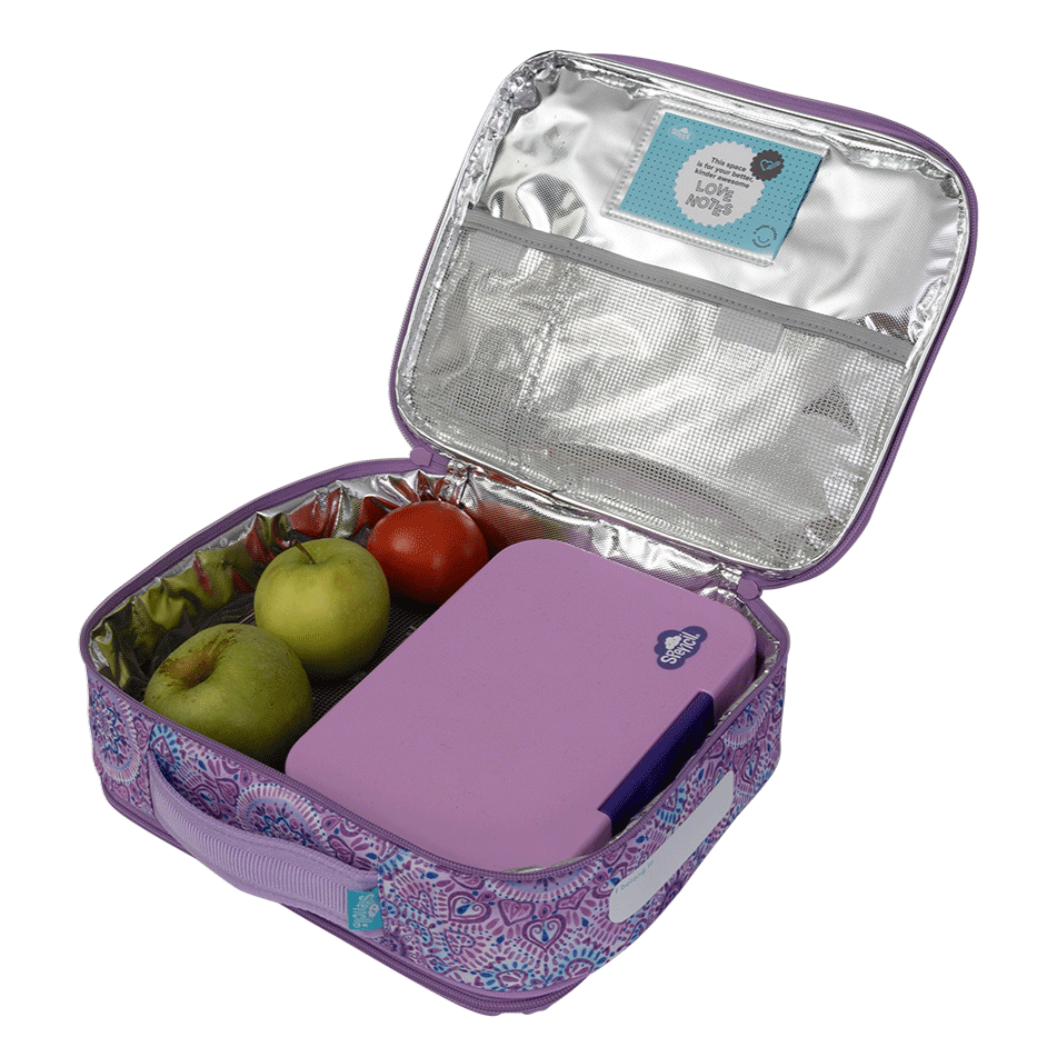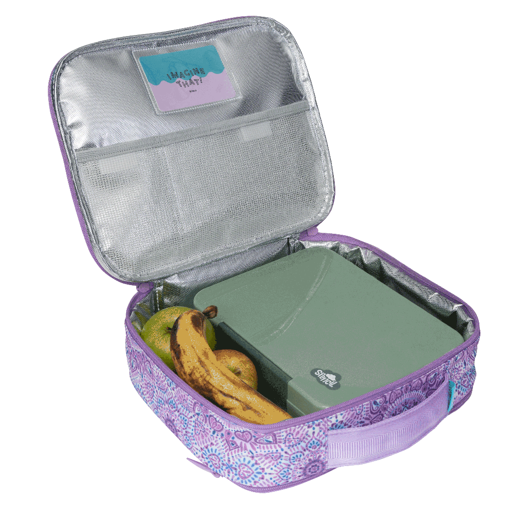 The Big Cooler Lunch Bag is the ideal bigger size- with extra room for fruit or small containers! With aluminium food-safe silver lining, a back zip pocket that perfectly fits the Big Chill Pack, outside name card pocket and an additional inside pocket for 'Love Notes' this is your go-to lunch bag for school and play!
