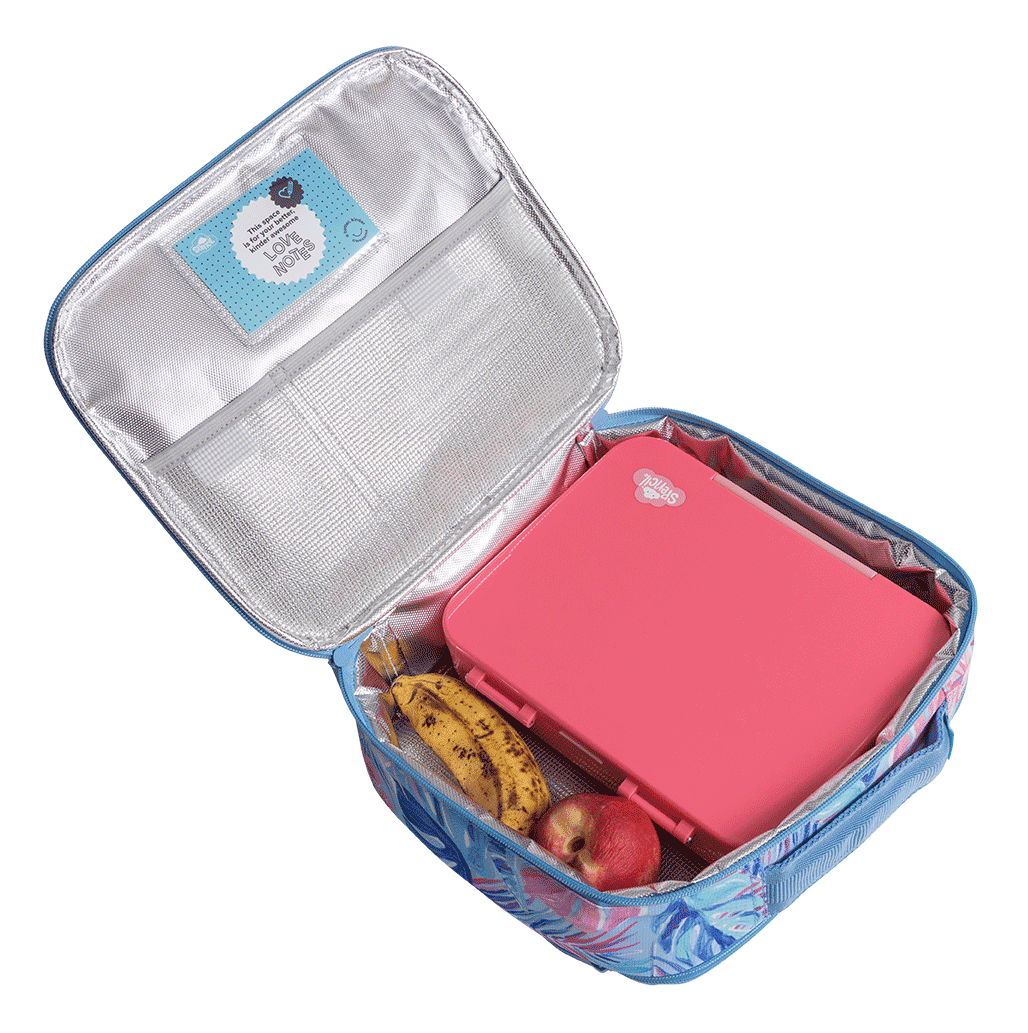 The Big Cooler Lunch Bag is the ideal bigger size- with extra room for fruit or small containers! With aluminium food-safe silver lining, a back zip pocket that perfectly fits the Big Chill Pack, outside name card pocket and an additional inside pocket for 'Love Notes' this is your go-to lunch bag for school and play!