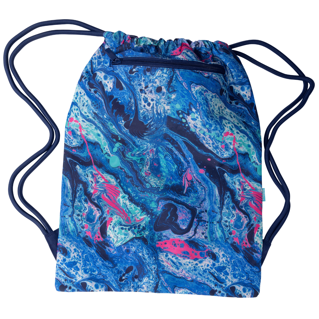 Big Drawstring Bag - Liquid Marble: Dive into a swirl of colour! Liquid Marble mixes neons and navy in a paint-pour explosion that's full of energy. With drips, splashes and marbled magic, it's made for kids who love to get creative and a little bit messy (in the best way!).