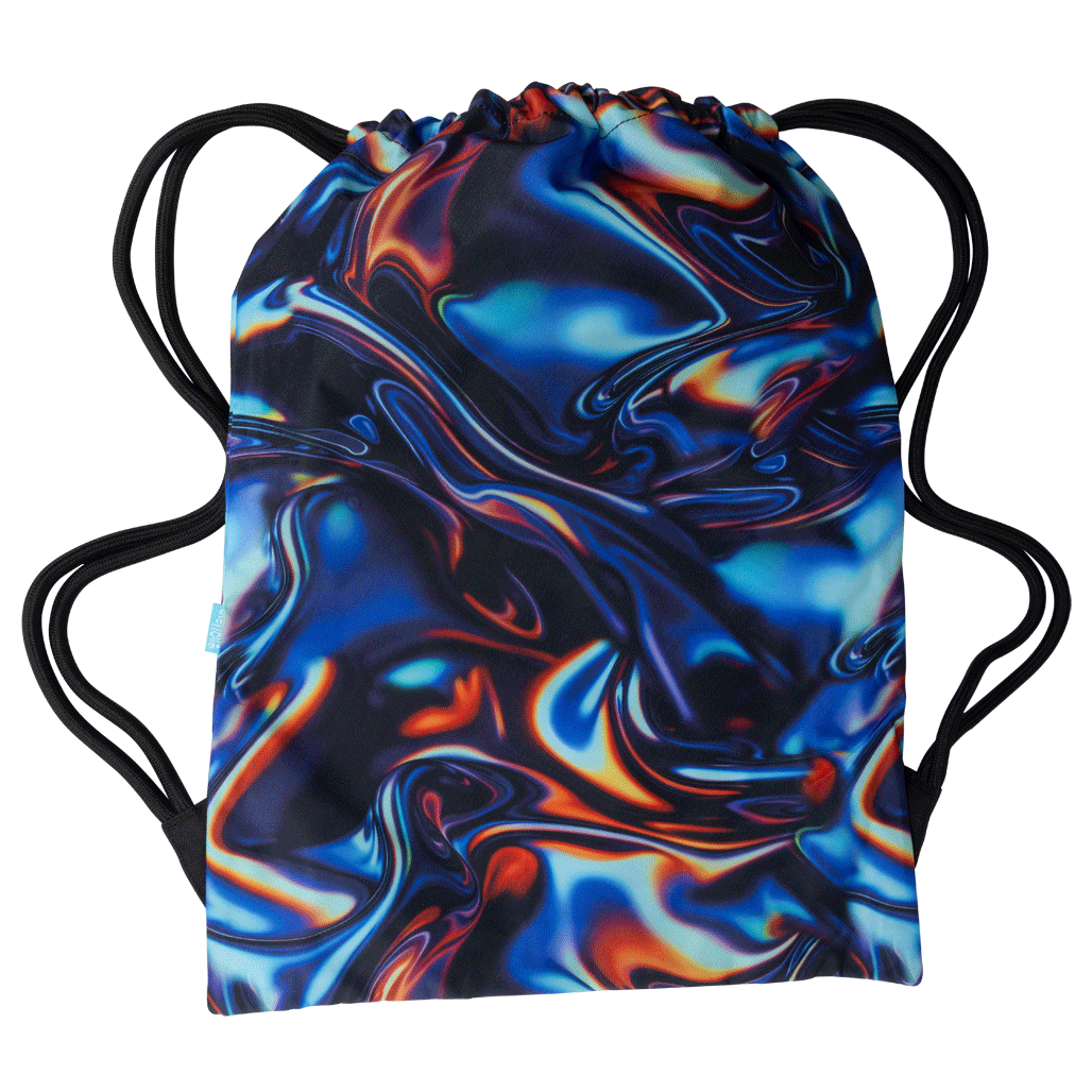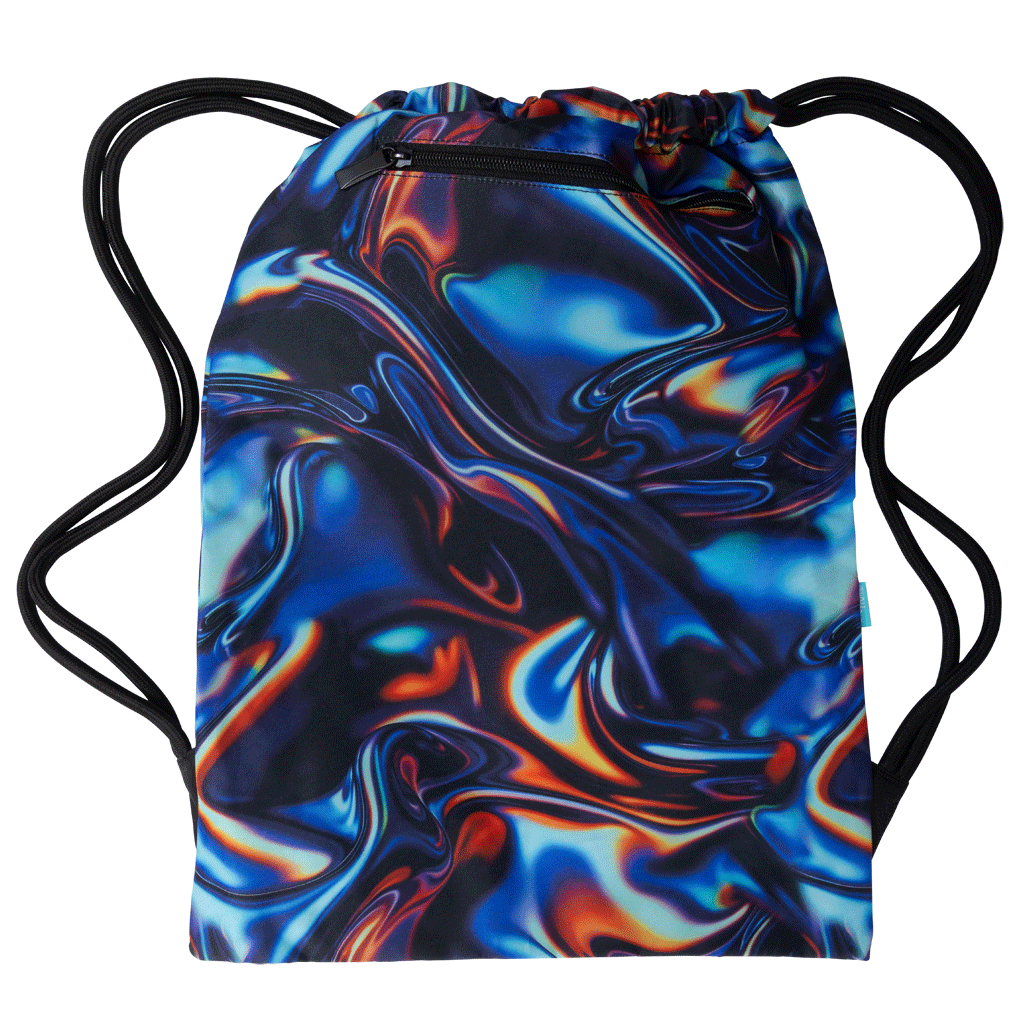 Big Drawstring Bag - Mettalic Waves: The go-anywhere, carry-all, multi-purpose bag that has any occasion covered! Designed for primary and tween kids, the Big Drawstring Bag is made with water-resistant fabric, perfect for sport, swimming and adventures and has a convenient zipped pocket feature to safeguard wallets, passes, keys, and coins. The functional single pocket, drawstring design makes this bag quick and easy to pack, open and close