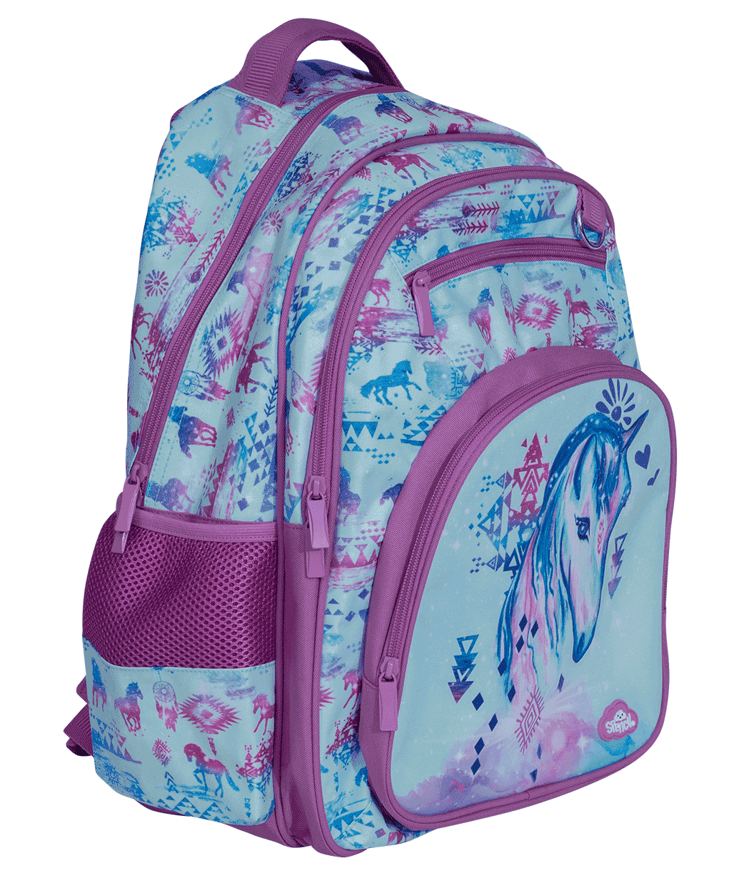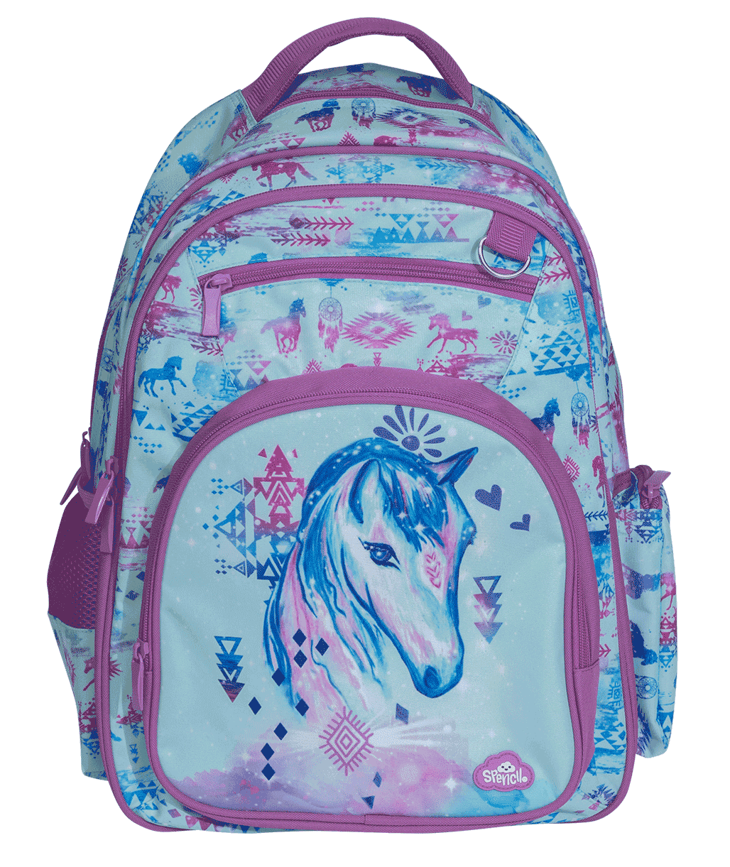 Big Kids Backpack - Aztec Horse: The perfect print for horsie kids, with pastel tones, dreamcatchers and proud Aztec ponies. The Spencil backpack is a smart looking, generous-sized backpack with all the awesome features kids need to make their every day! Made with Spencil thought and to the highest Spencil quality, our backpack is a favourite choice for kids and parents alike.