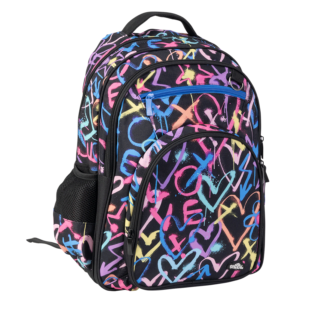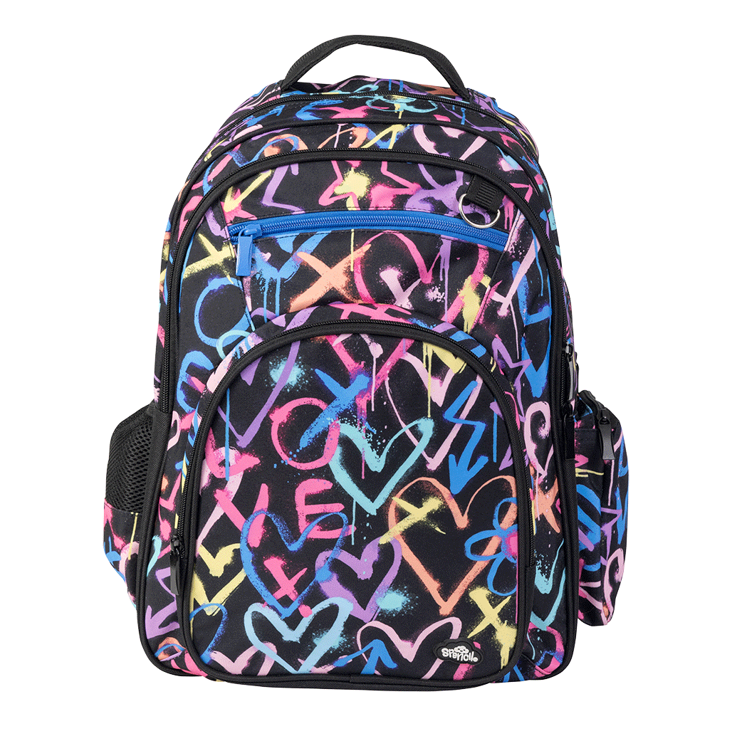 Big Kids Backpack - Hearts & Crosses: Blending whimsical hearts with bold crosses, this design has a playful yet stylish look that is perfect for girls. Every teen adores a love heart bag! The Spencil backpack is a smart looking, generous-sized backpack with all the awesome features kids need to make their every day! Made with Spencil thought and to the highest Spencil quality, our backpack is a favourite choice for kids and parents alike.