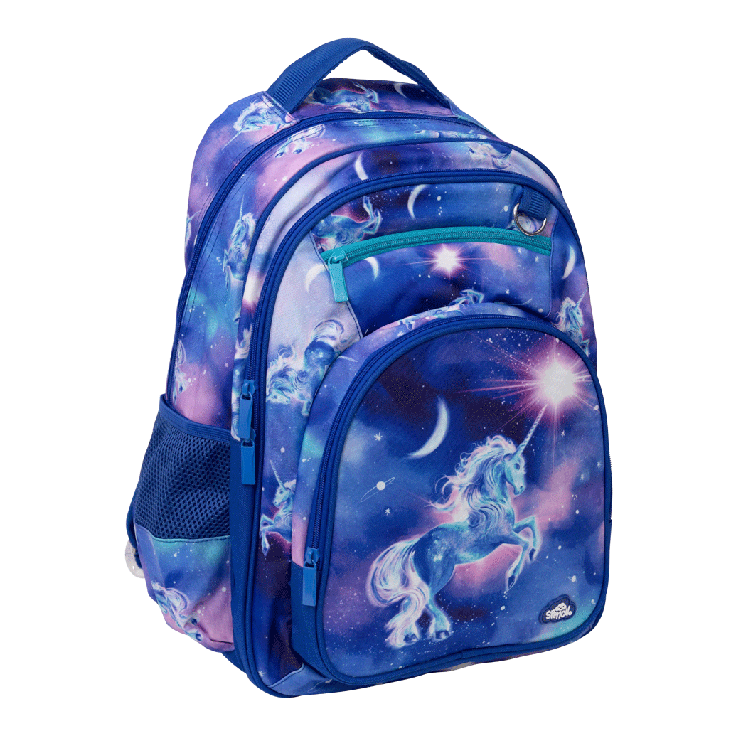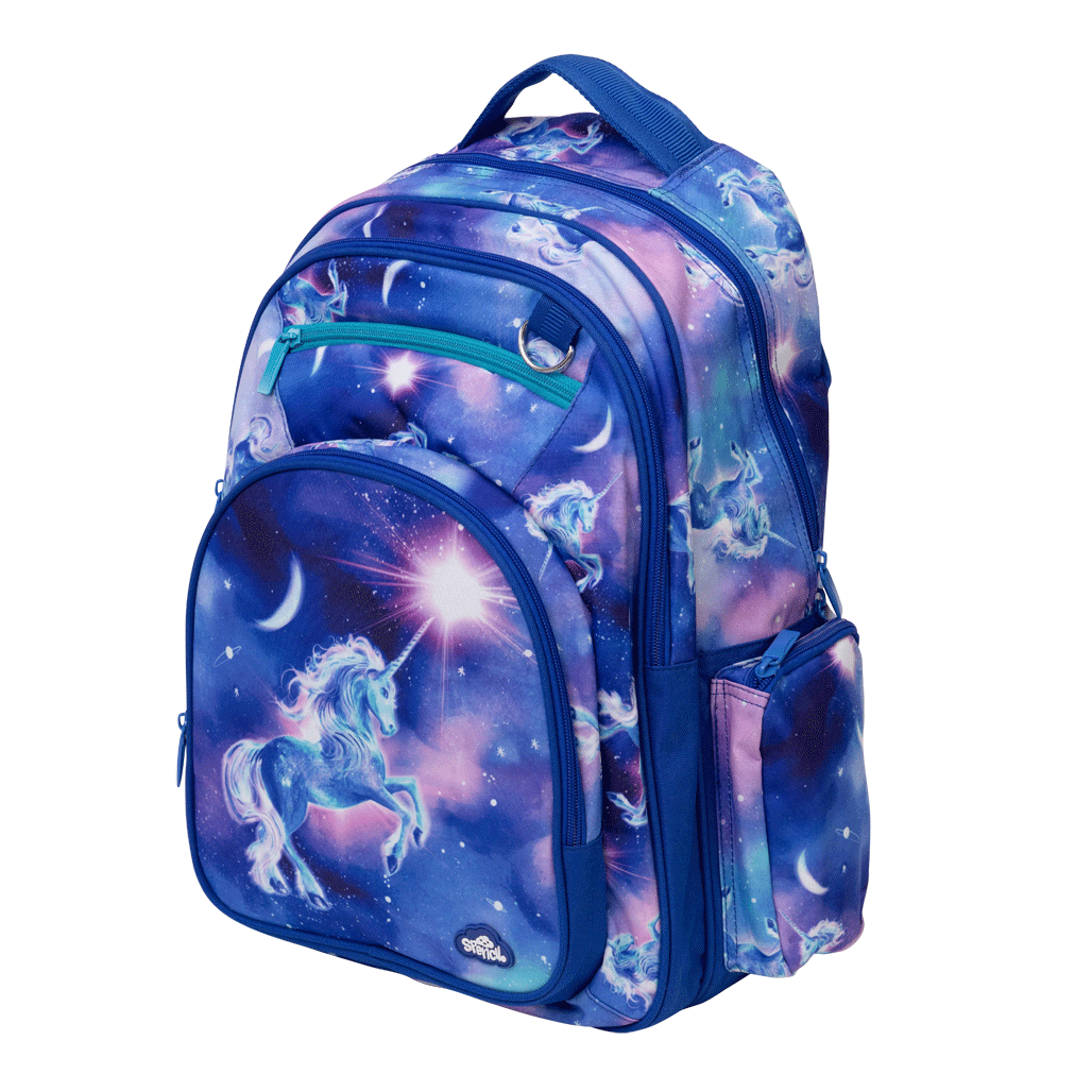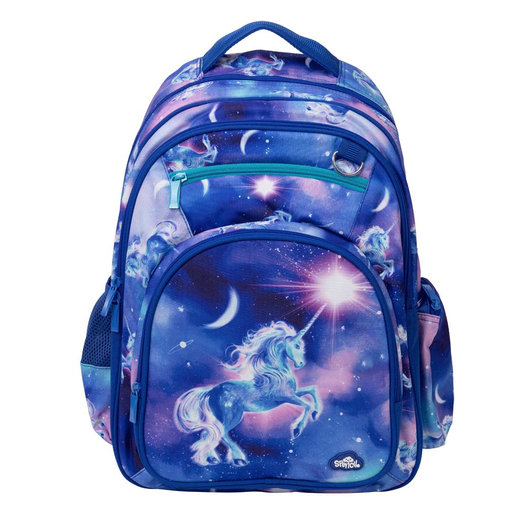 Big Kids Backpack - Moonlit Unicorn: Under a starlit sky, magic comes to life! Moonlit Unicorn is a dreamy swirl of twilight colours, sparkling stars and one truly majestic unicorn. It's pure enchantment for kids who believe in a universe full of wonder. The Spencil backpack is a smart looking, generous-sized backpack with all the awesome features kids need to make their every day! Made with Spencil thought and to the highest Spencil quality, our backpack is a favourite choice for kids and parents alike.