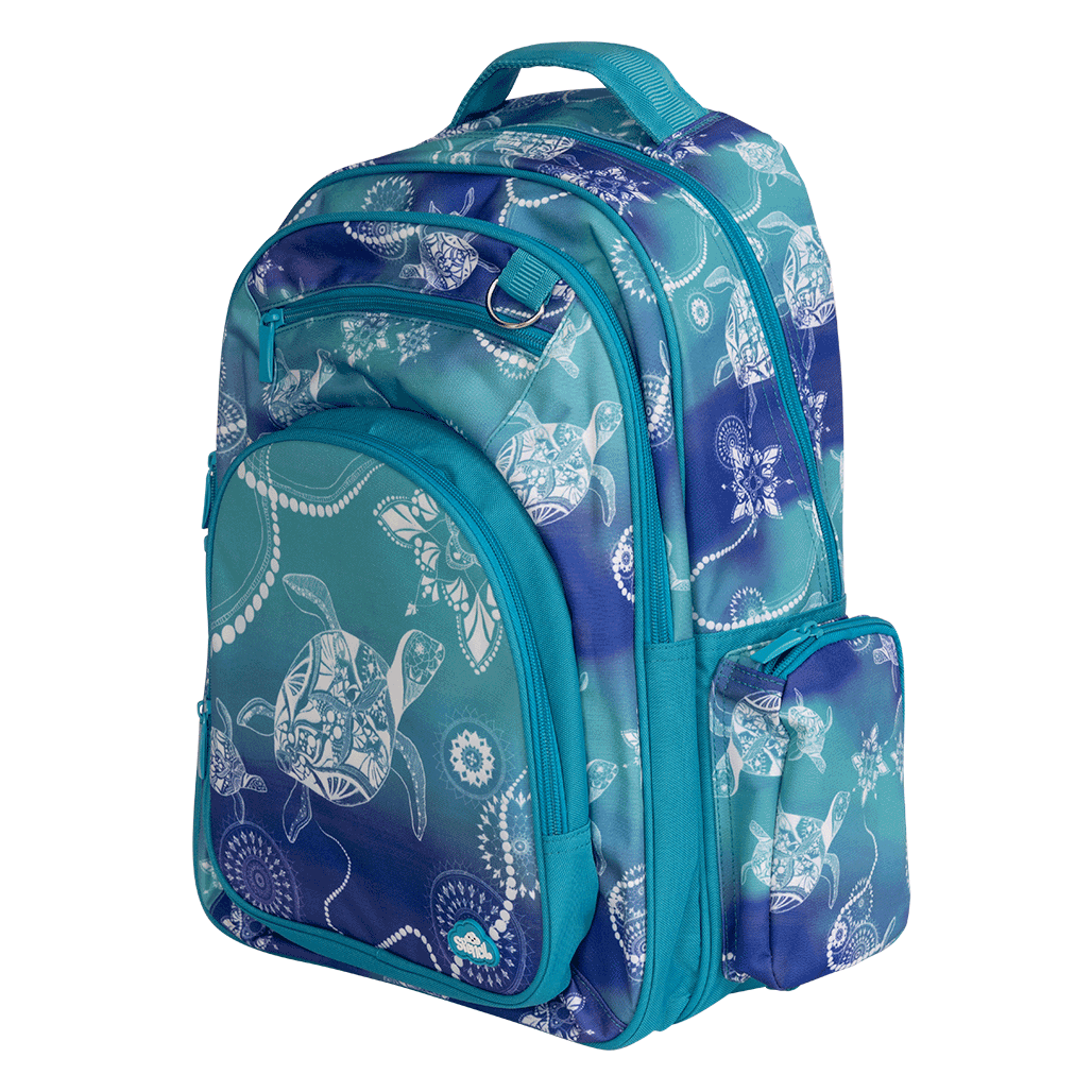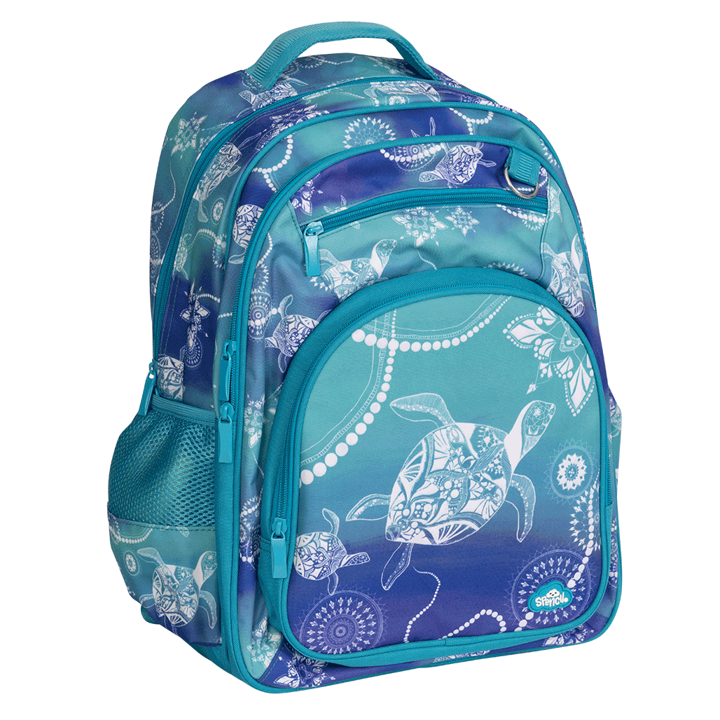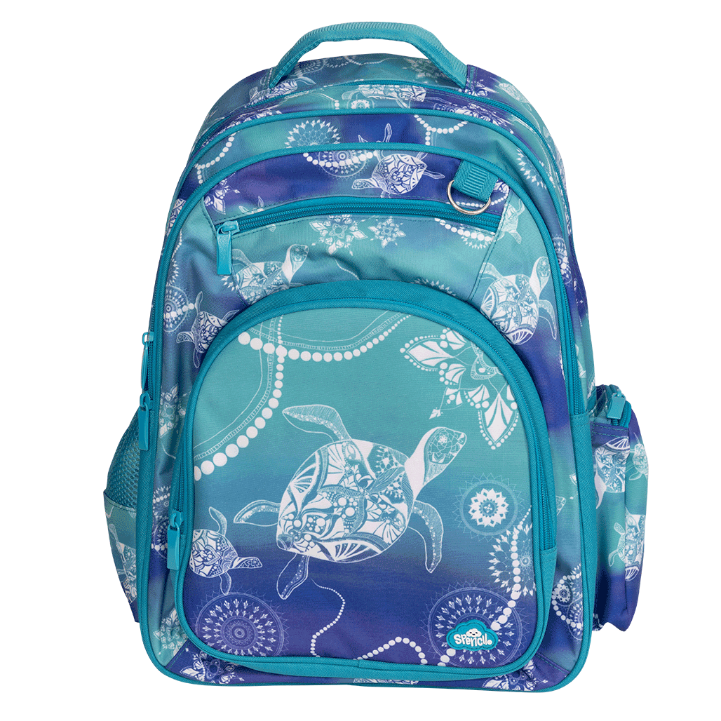 Big Kids Backpack - Turtle of Life: Turtle of Life is the original painting by 13-year-old Sheyleace Stevens, a proud Indigenous artist from the Dunghutti people from Birpai land in Port Macquarie.