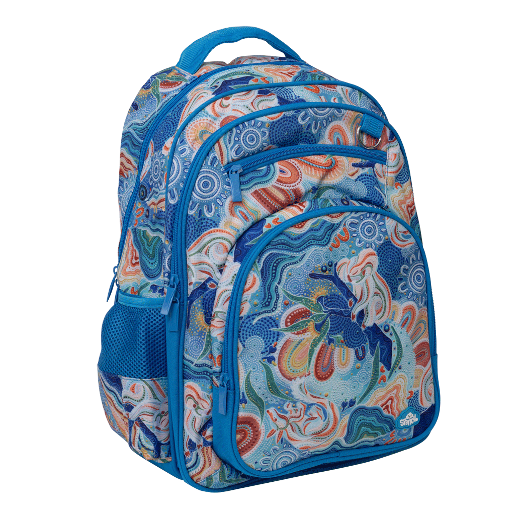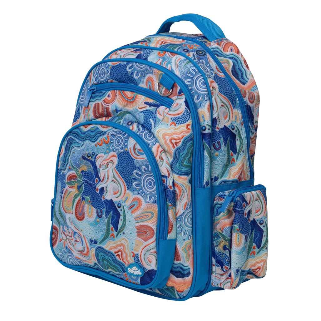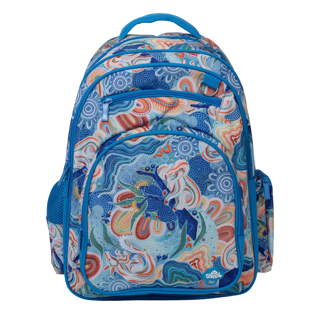 Big Kids Backpack - Wani-Wani Watina: Wani-Wani Watina means 'To Play Side By Side' in the Kalkadoon language- a beautiful reminder of friendship and togetherness. Created by Indigenous artist sisters Brooke and Jaide Sutton for our newest Spencil Australian Indigenous Artist Collaboration, this design features charming koalas and bilbies in soft, hand-drawn detail. Each piece in the range is a celebration of wildlife and culture and a testament to the sisters' exquisite artistry.
