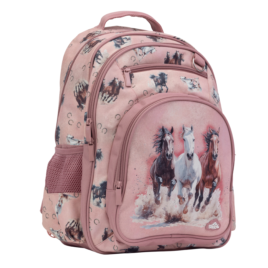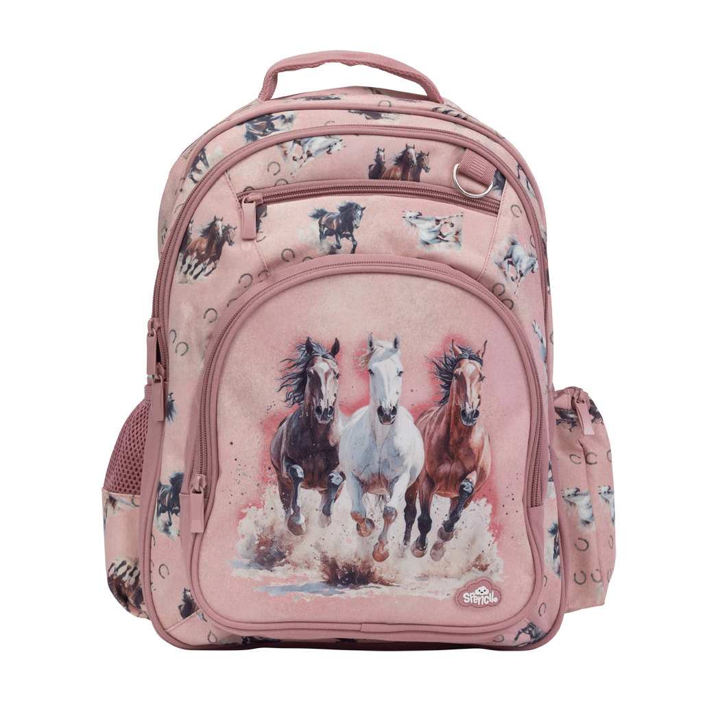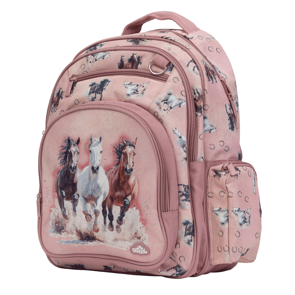 Big Kids Backpack - Wild Horses: For every horse-loving kid with a wild heart and big imagination - this one's for you. Wild Horses gallops into a dreamy world where ponies run free across soft, dusty pink skies. It's warm, whimsical, and full of freedom.The Spencil backpack is a smart looking, generous-sized backpack with all the awesome features kids need to make their every day! Made with Spencil thought and to the highest Spencil quality, our backpack is a favourite choice for kids and parents alike.
