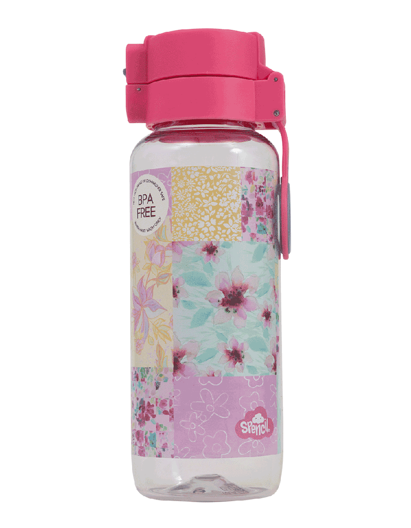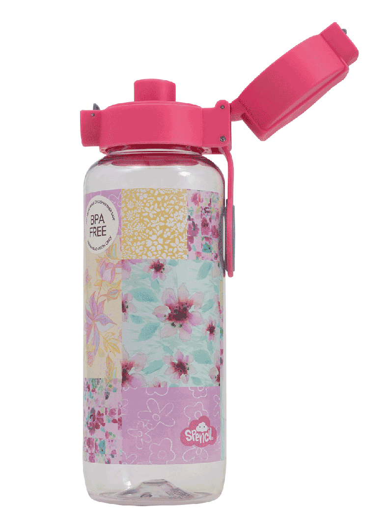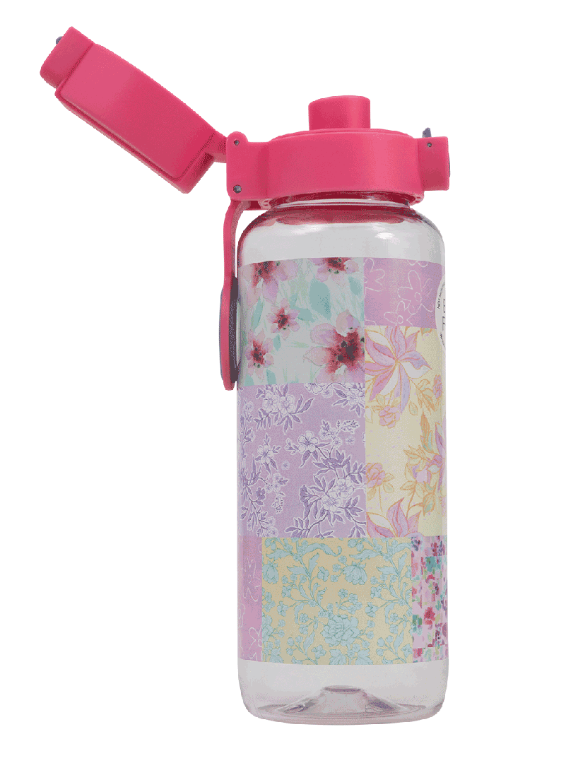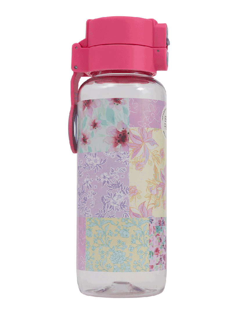 Big Water Bottle 650ml - Blooming Beauty: This pretty patchwork is a floral delight — a tapestry of blooms so sunny and bright! Do your kids have a thirst for fun? Then this big kids' water bottle with a 650ml capacity is the perfect school and play partner for them. You don't have to worry because it’s free from nasty materials like BPA and features a lockable click-button lid to prevent spillage disasters!