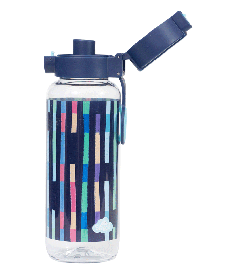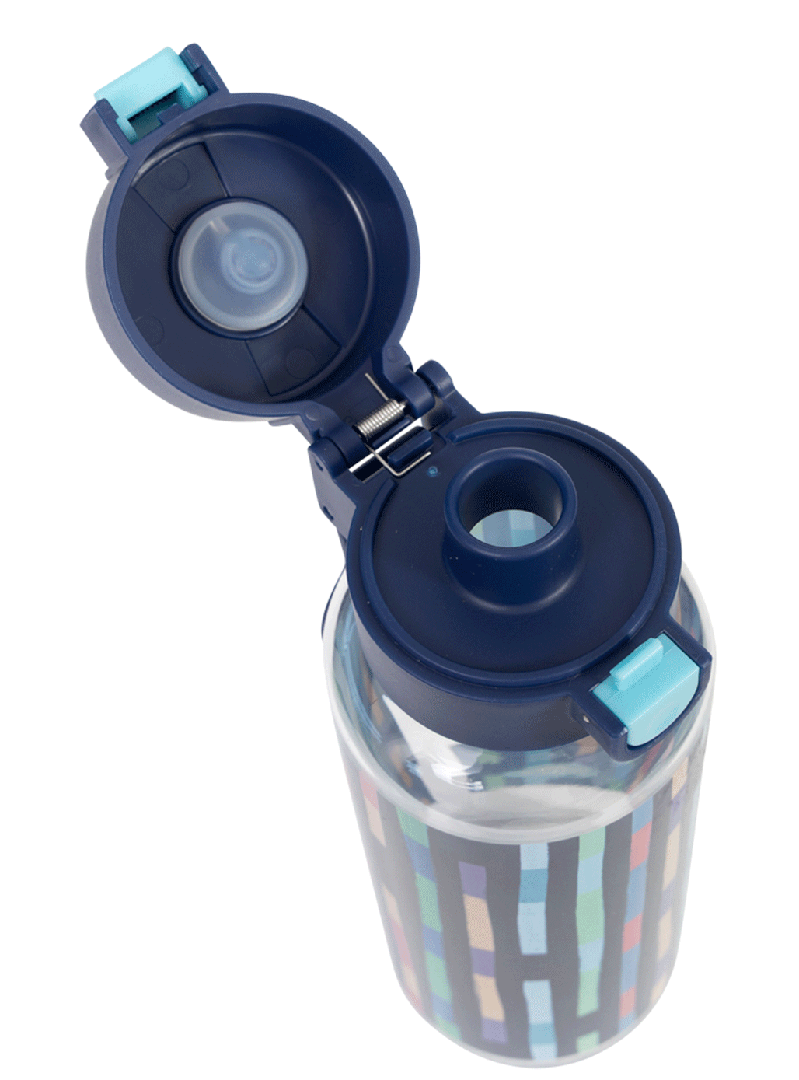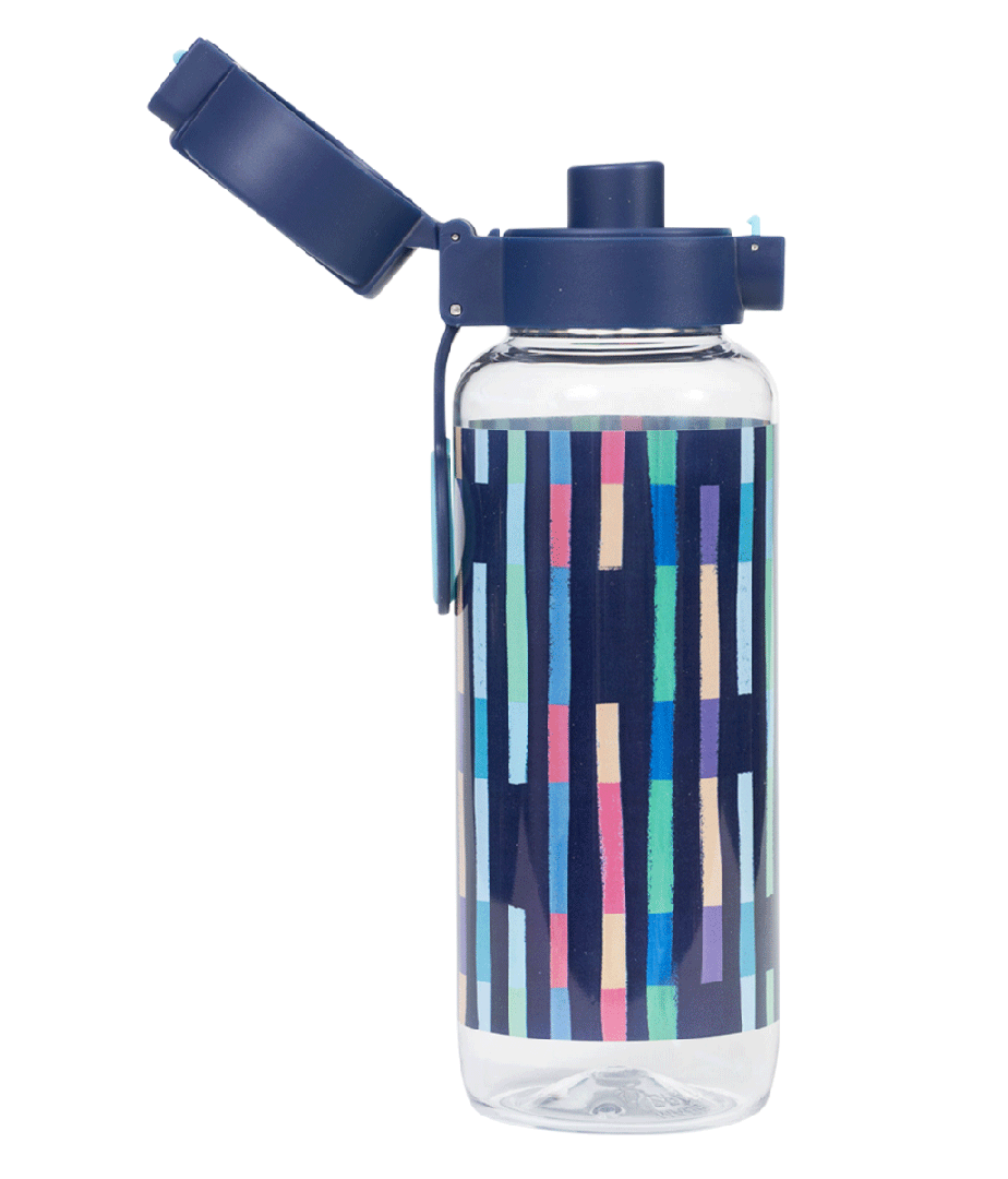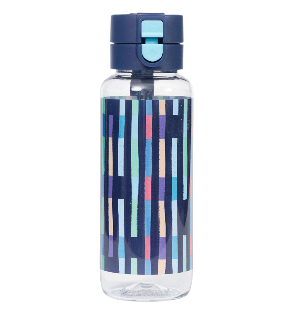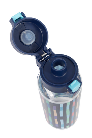 Big Water Bottle 650ml - Bright Stripes: Vibrant, bold, and full of energy — Bright Stripes is made for kids who see the world as one big, colourful adventure! Fun, lively, and impossible to miss — just like them! Do your kids have a thirst for fun? Then this big kids' water bottle with a 650ml capacity is the perfect school and play partner. You don't have to worry because it’s free from nasty materials like BPA and features a lockable click-button lid to prevent spillage disasters!