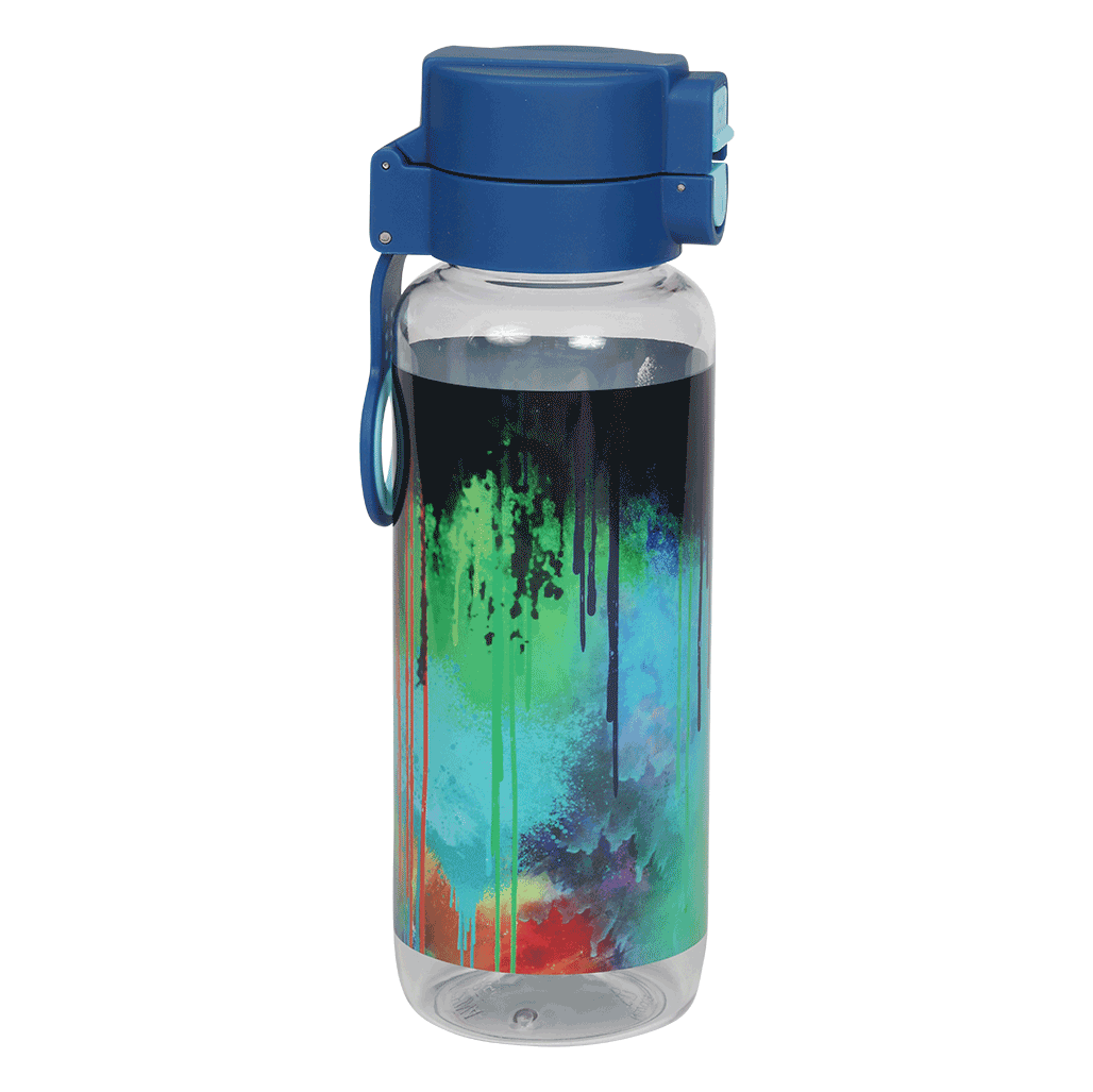 Big Water Bottle 650ml - Colour Drip: Bright splashes of colour meet everyday functionality with Colour Drip — a vibrant design for kids who love to stand out! Do your kids have a thirst for fun? Then this big kids' water bottle with a 650ml capacity is the perfect school and play partner. You don't have to worry because it’s free from nasty materials like BPA and features a lockable click-button lid to prevent spillage disasters.