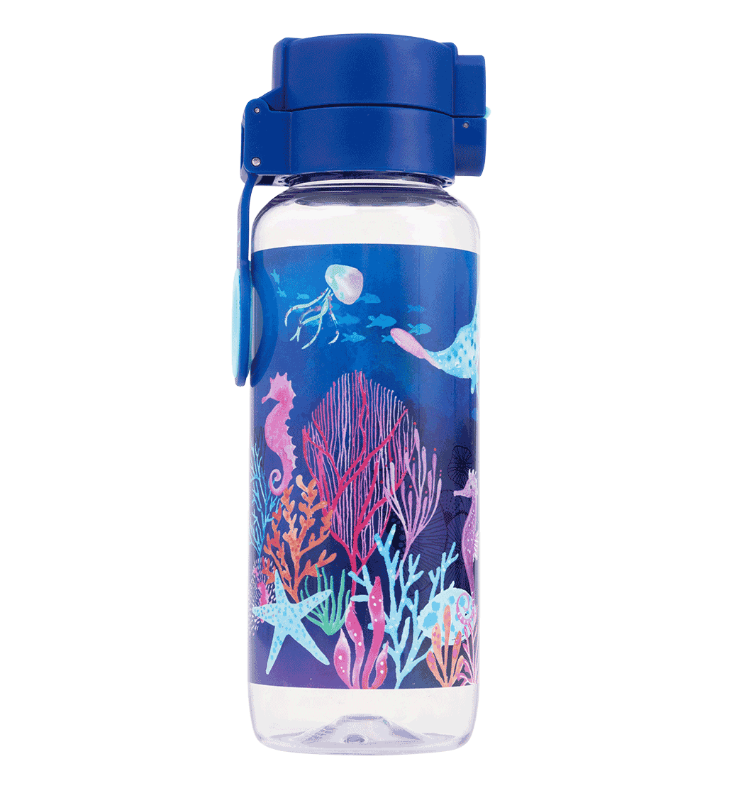 Big Water Bottle 650ml - Coral Garden: Dive into an underwater paradise with Coral Garden — a design inspired by the beauty of ocean life! Do your kids have a thirst for fun? Then this big kids' water bottle with a 650ml capacity is the perfect school and play partner. You don't have to worry because it’s free from nasty materials like BPA and features a lockable click-button lid to prevent spillage disasters.