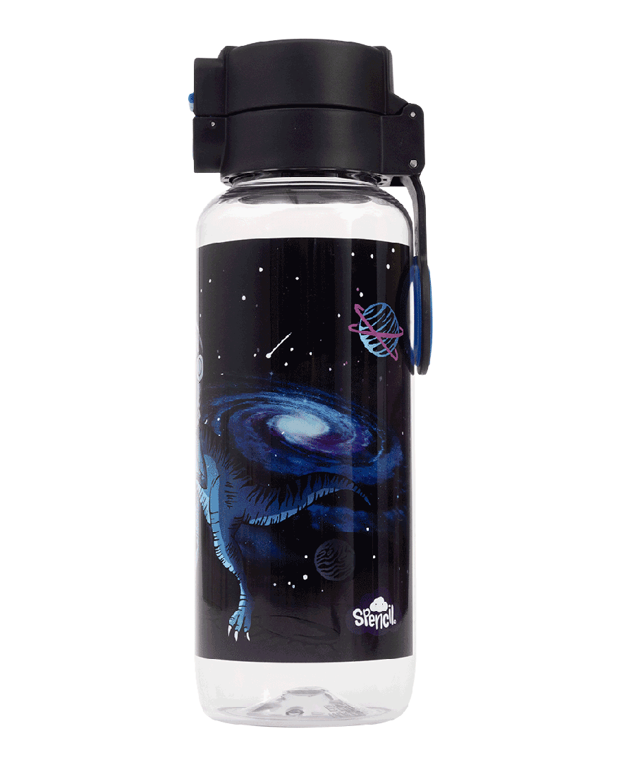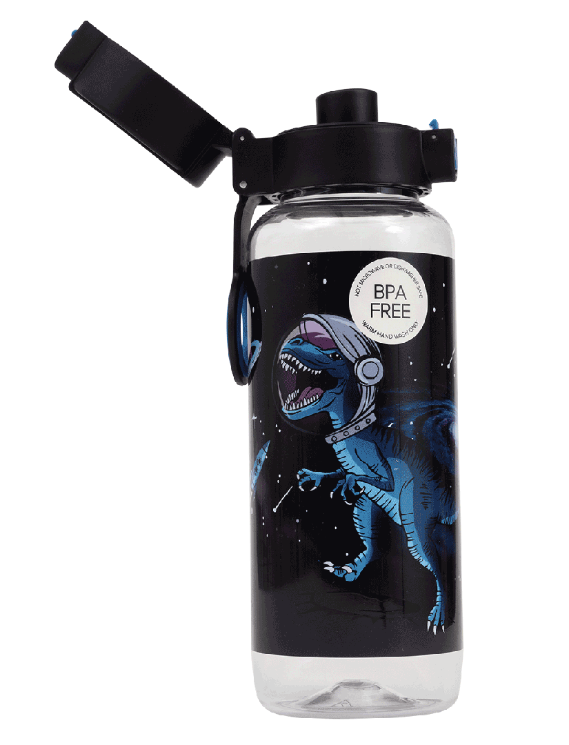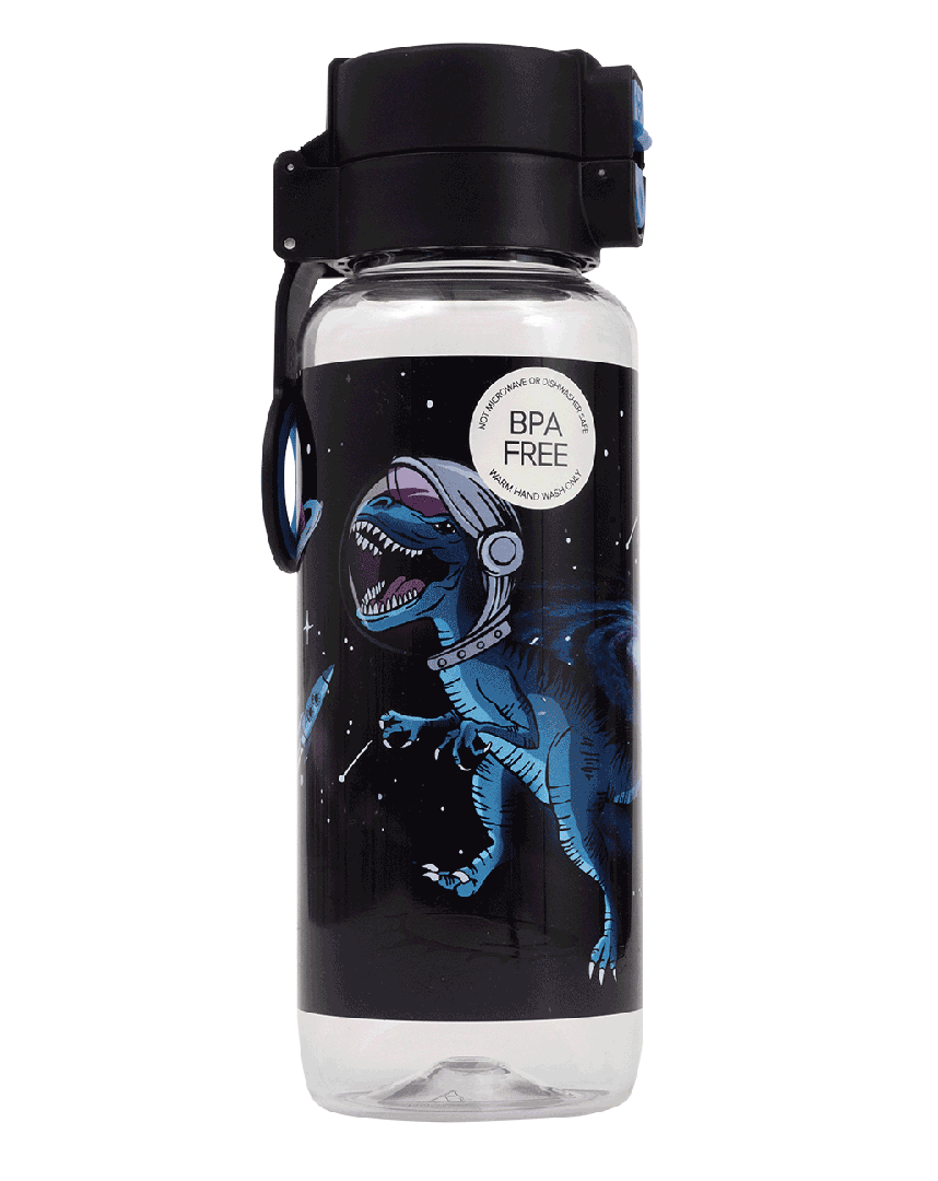 Big Water Bottle 650ml - ExtraT-REXtrial: Once upon a time, dinosaurs roamed the Earth… and now they’ve blasted off into space! Let imaginations soar with the epic ExtraT-REXtrial design — perfect for adventurous kids who love prehistoric fun with a cosmic twist. Do your kids have a thirst for fun? Then this big kids' water bottle with a 650ml capacity is the perfect school and play partner. You don't have to worry because it’s free from nasty materials like BPA and features a lockable click-button lid to prevent spillage disasters.