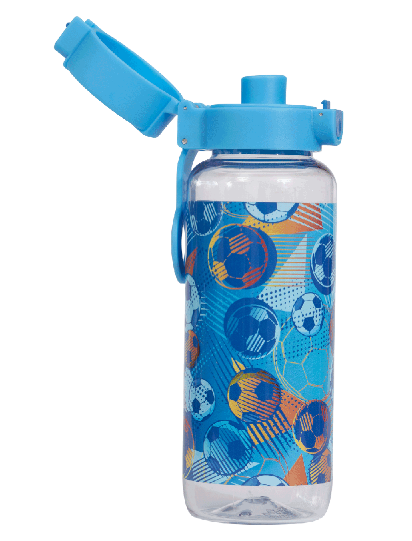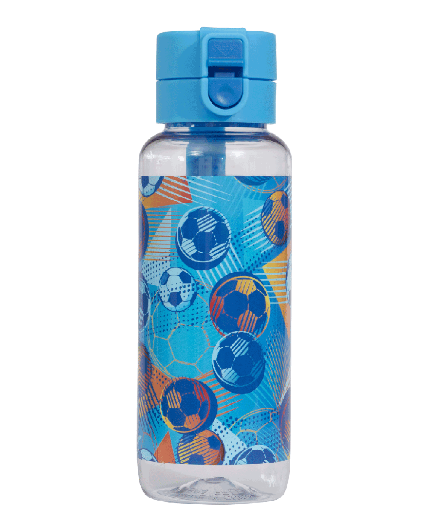 Big Water Bottle 650ml - Game On: Kick off your day with Game On! This soccer-themed design is perfect for sports fans who live and breathe the beautiful game. Whether you’re scoring goals or cheering from the sidelines, this bottle keeps your passion alive — and your drinks just right! Do your kids have a thirst for fun? Then this big kids' water bottle with a 650ml capacity is the perfect school and play partner. You don't have to worry because it’s free from nasty materials like BPA and features a lockable click-button lid to prevent spillage disasters.