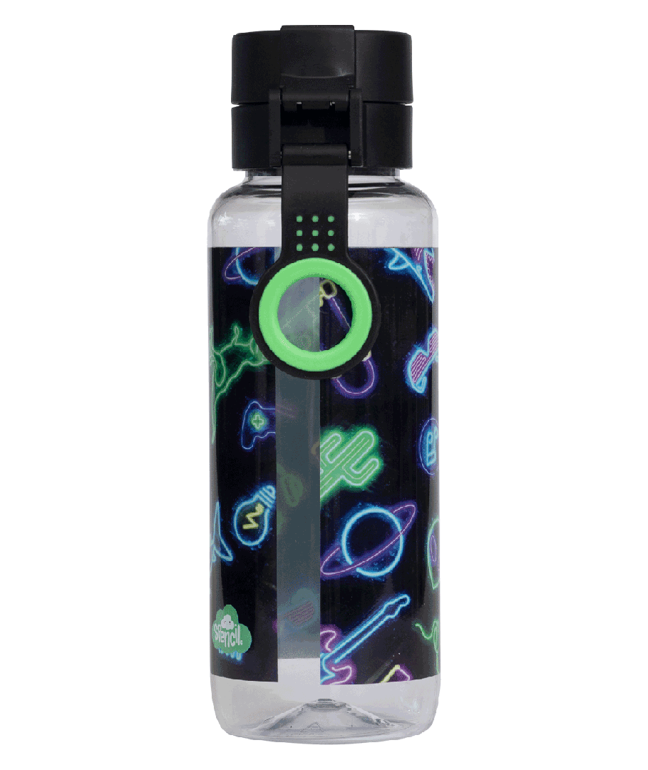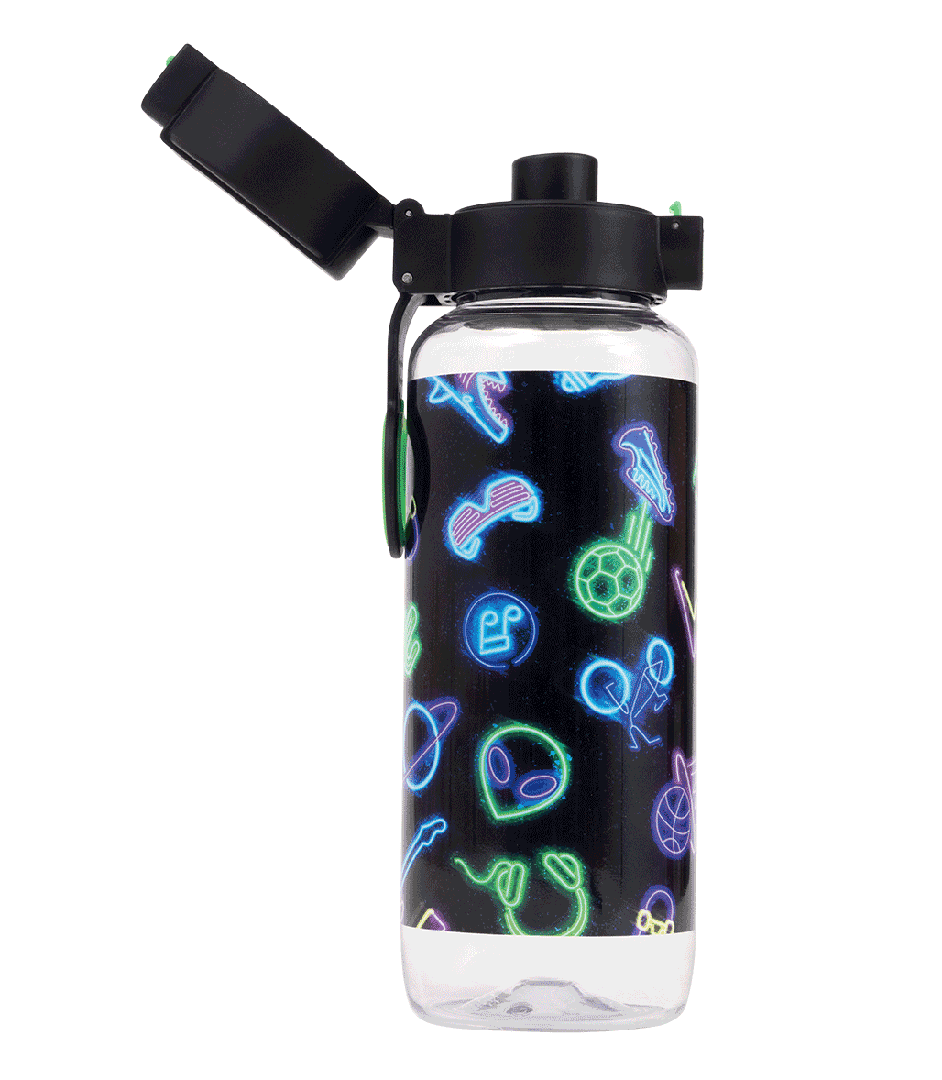 Big Water Bottle 650ml - Neon Life: Bright, bold, and bursting with energy — Neon Life brings a pop of colour to every adventure! Perfect for kids who love to stand out and shine, this vibrant design keeps hydration fun and full of personality. Do your kids have a thirst for fun? Then this big kids' water bottle with a 650ml capacity is the perfect school and play partner. You don't have to worry because it’s free from nasty materials like BPA and features a lockable click-button lid to prevent spillage disasters.